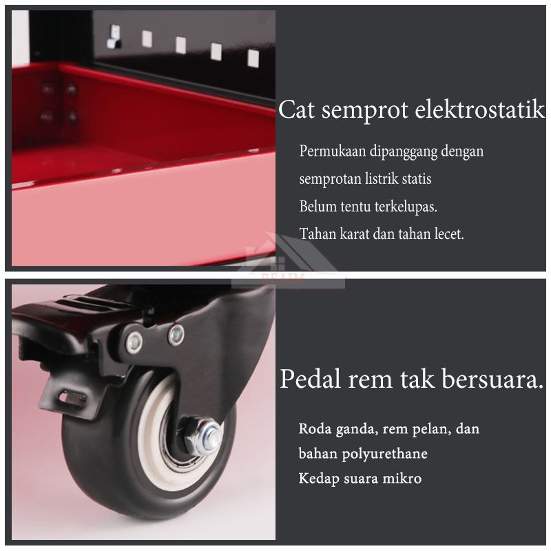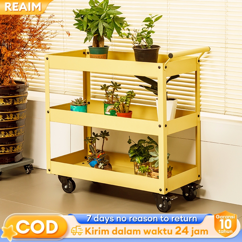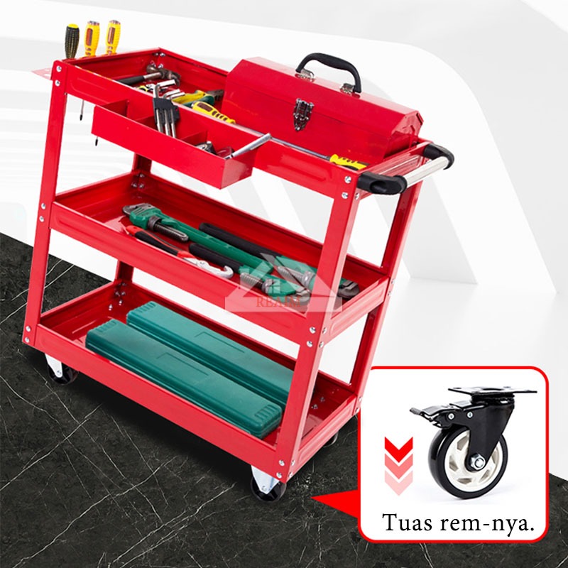Reaim troli bengkel rak 3 susun Troli perkakas tiga tingkat kabinet alat tiga lapis multifungsi rak ponsel perawatan