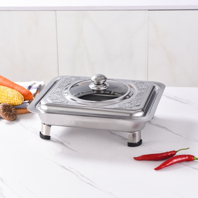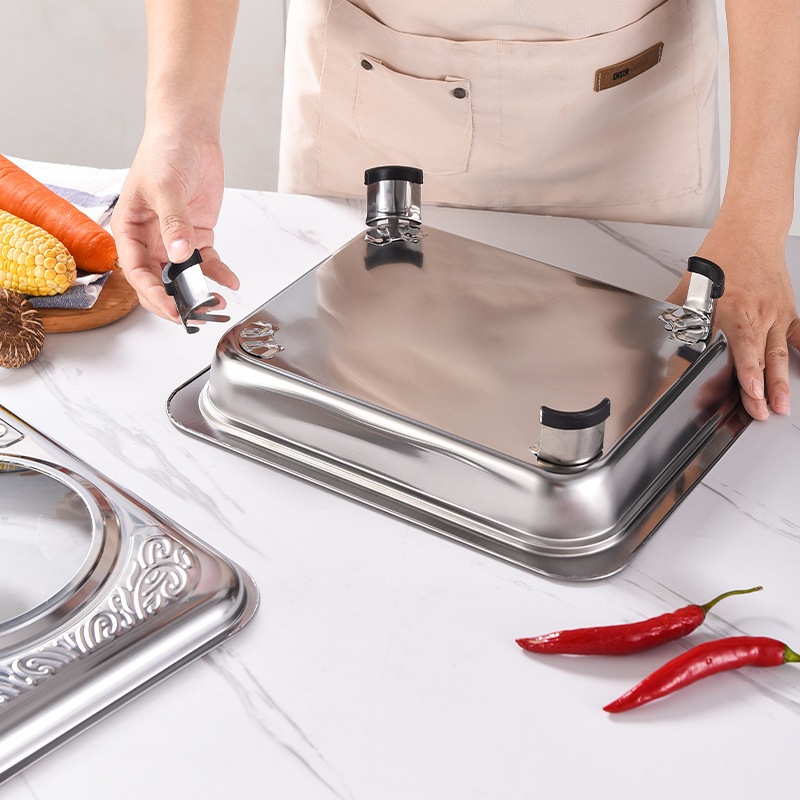 BMW Kitchenware - 2 Pcs Prasmanan Tempat Wadah Lauk Tutup Kombinasi Set Chafing Dish Fast Food Kombinasi Stainless Kaca
