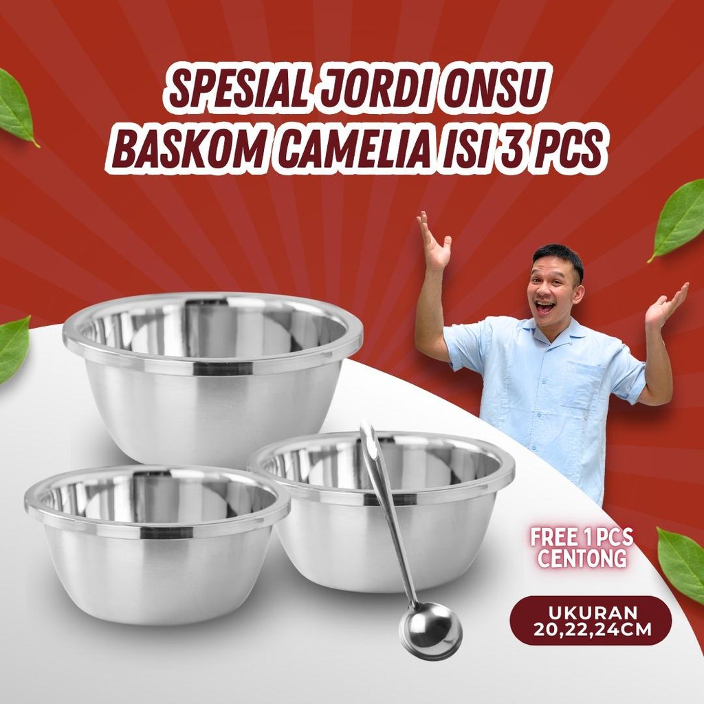 BMW Kitchenware - Special Jordi Paket Baskom Camelia Ukuran 20, 22, 24 CM free Centong Bahan Stainless Steel Tebal Bahan