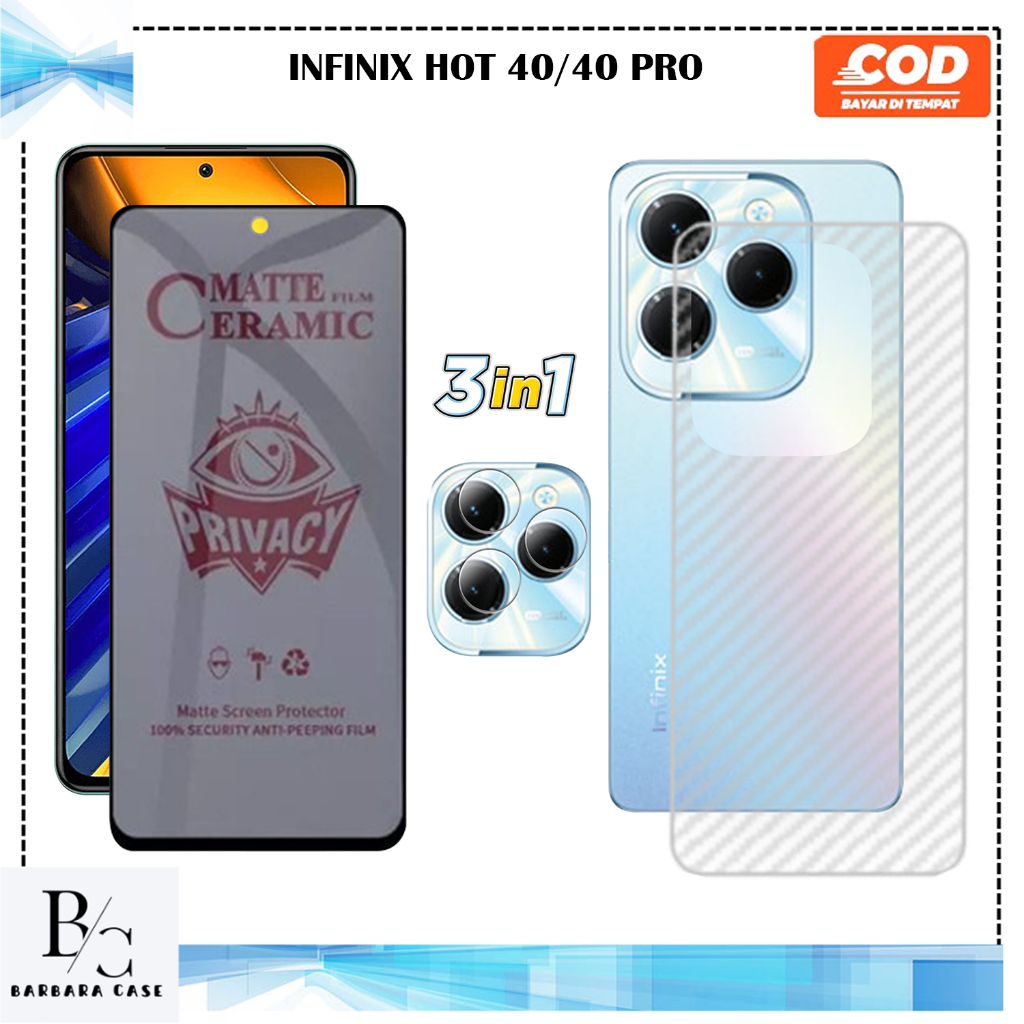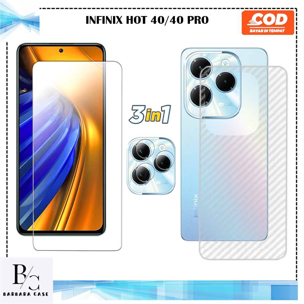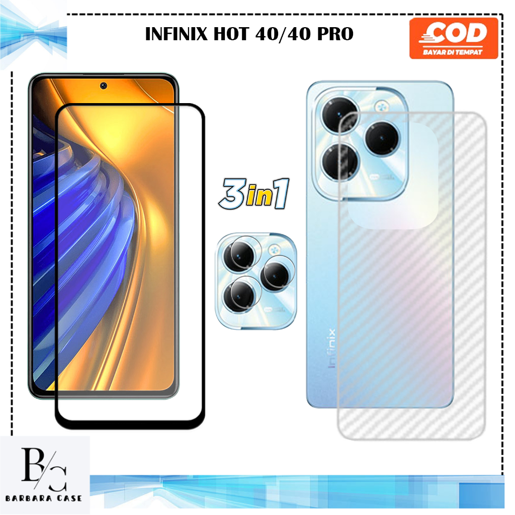 PAKET 3IN1 TEMPERED GLASS INFINIX HOT 40 40I 40 PRO ANTI GORES KACA FULL COVER HIGH QUALITY MEWAH