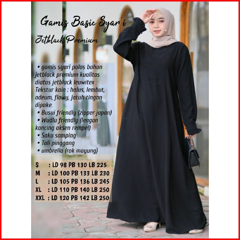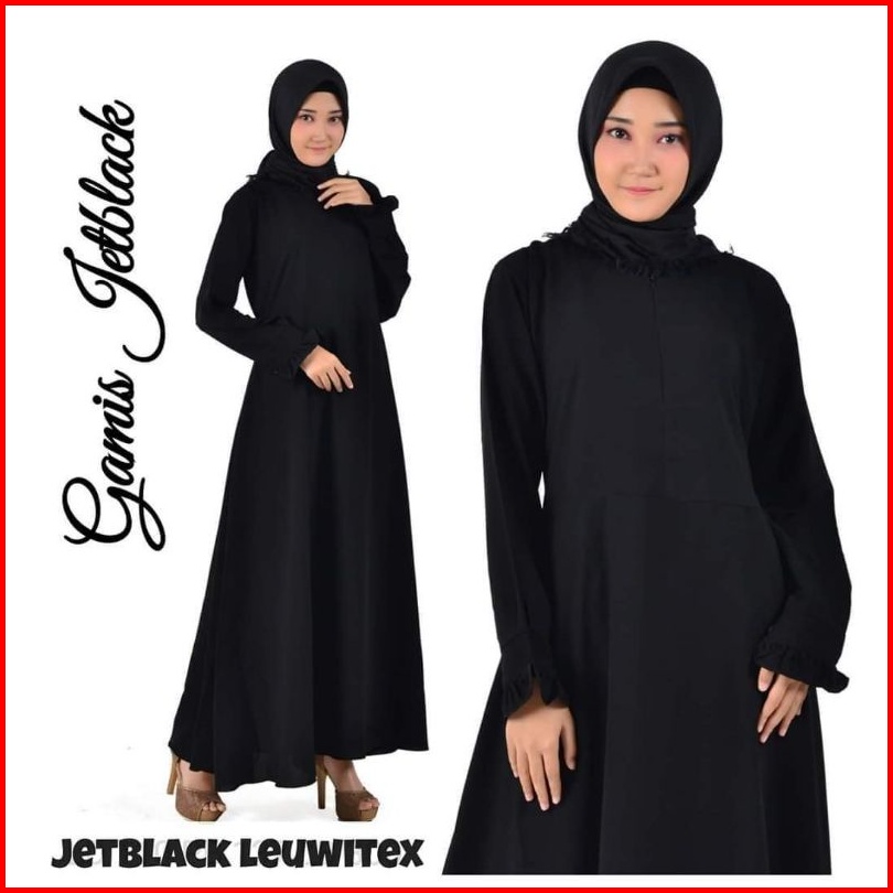 Exclusive Jetblack Gamis Jetblack Polos Gamis Syari Warna Hitam Pekat Gamis Jetblack Leuwitex