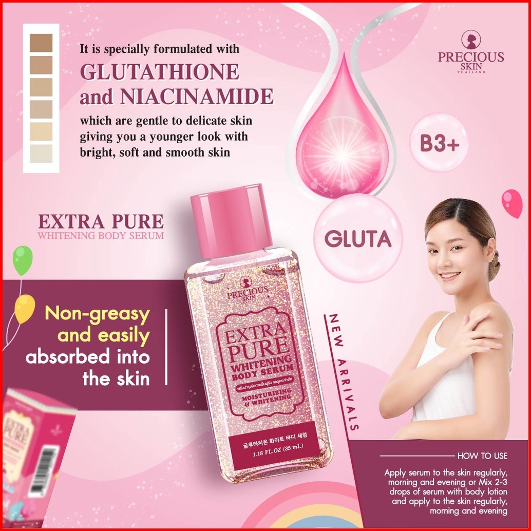 Precious Skin Thailand Extra Pure Spf 30 Uv Protection Brightening Whitening Body Serum 35ml