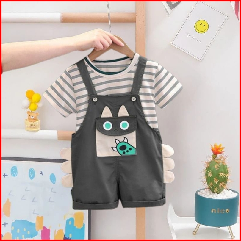 Setelan Bajju Kaos Salur Baju Kodok Anak Overall Gambar Lucu Fashion Anak Laki Laki Anak Perempuan Umur 1-5 Tahun