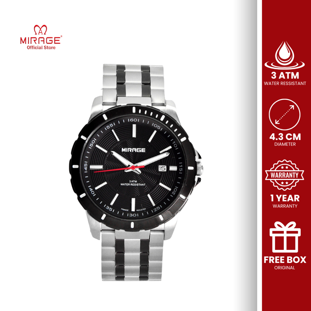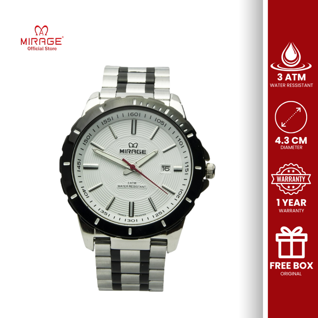 Mirage Jam Tangan Pria Analog Sporty Silver Stainles List Hitam Formal Tanggal Aktif 8549 M Original
