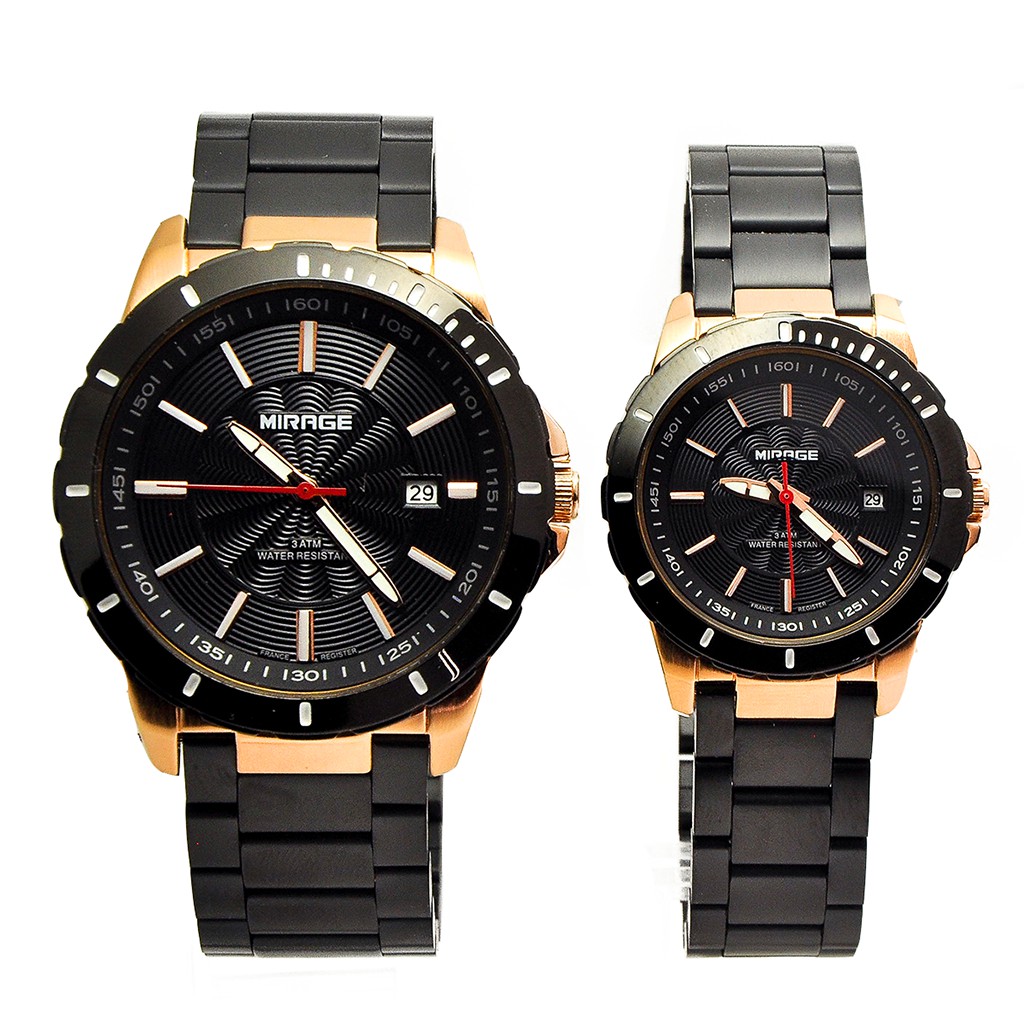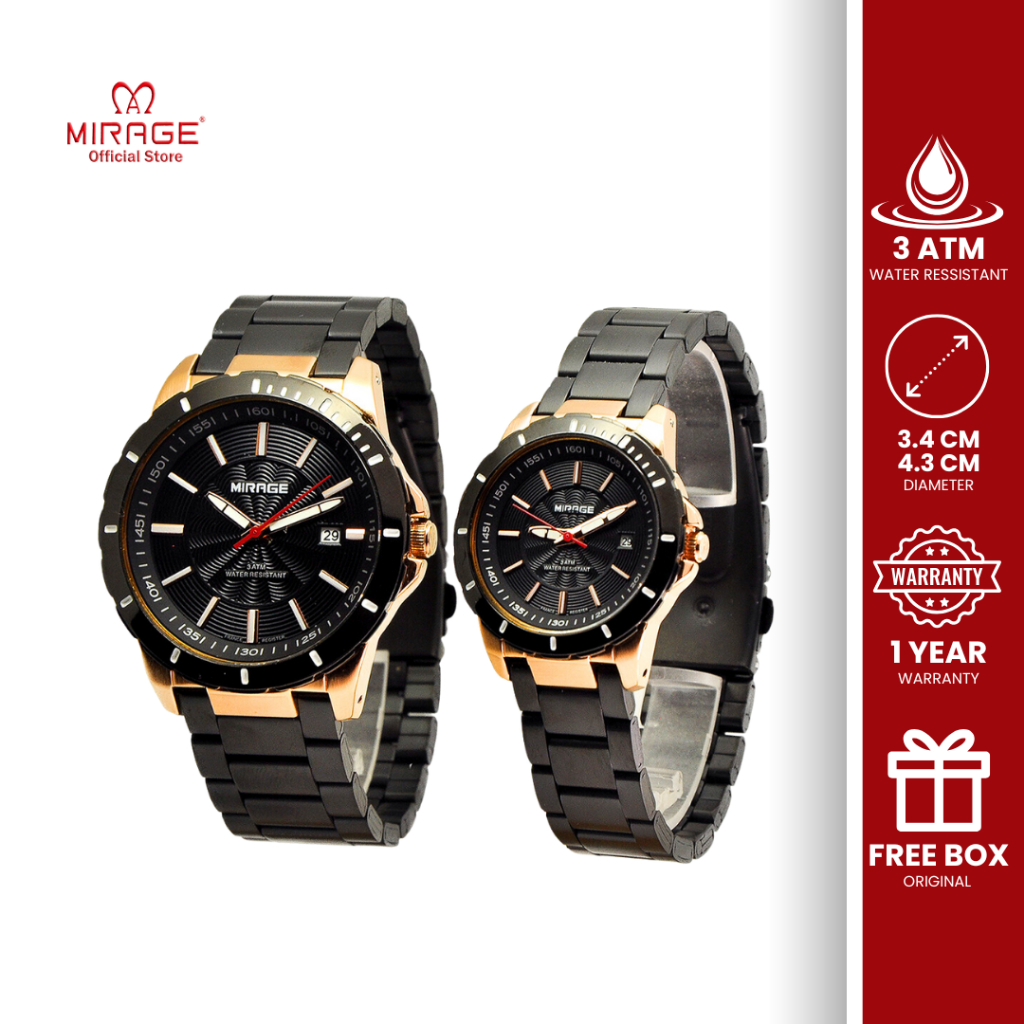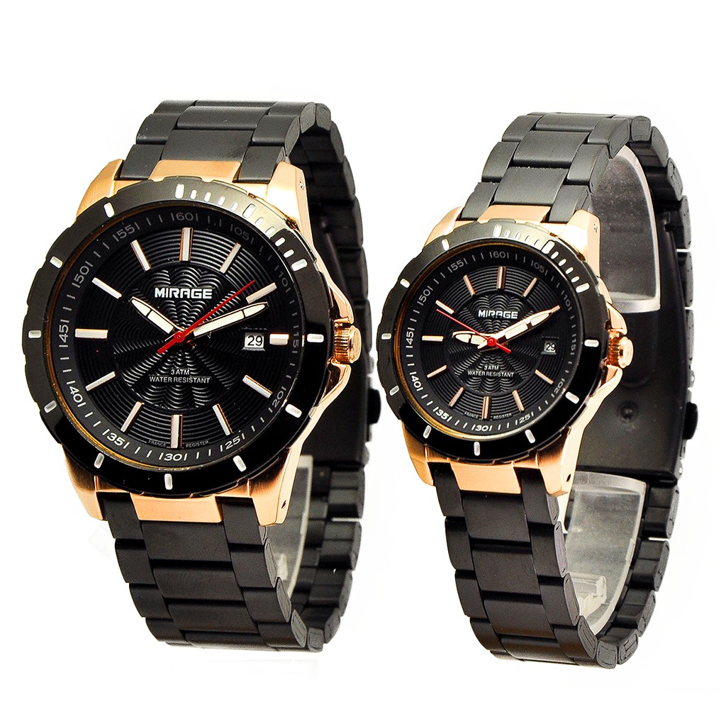 Mirage Watch Jam Tangan Couple Pasangan Analog Hitam Rosegold 8549 Anti Karat