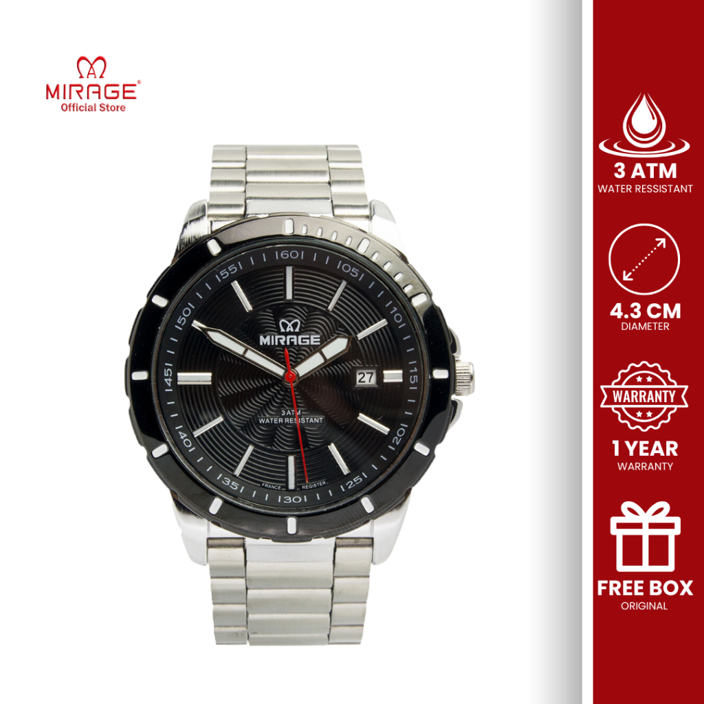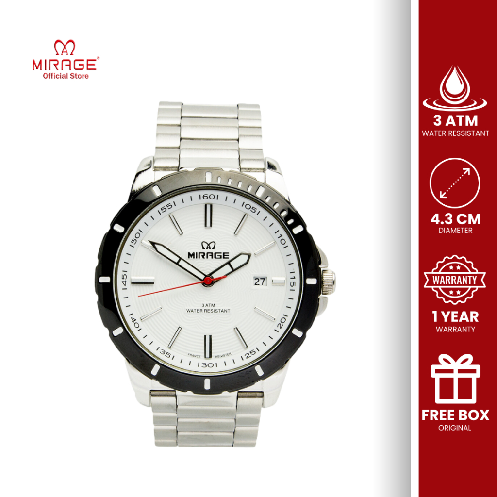 Mirage Jam Tangan Formal Analog Kasual Pria Silver Stainless Sporty 8549 M Tahan Air Tanggal Aktif