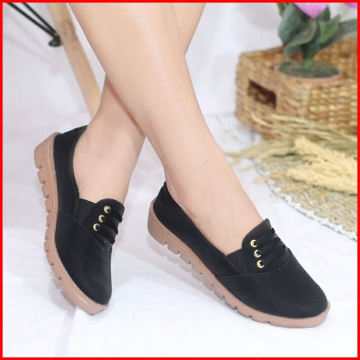 Sepatu Kerja Wanita Slip On Elegan Keren Tinggi 3 Cm Bahan Bagus Fashion Korea Premium Berkualitas