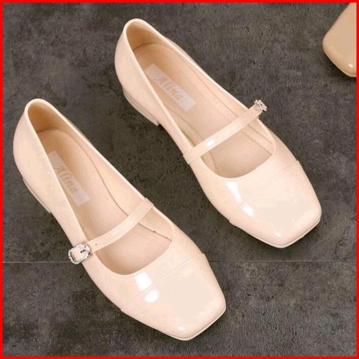 Sepatu Flat Shoes Alina L729-a1 Terbaru Dengan Tali Tengah Dan Insole Empuk Karet Jelly Untuk Wanita