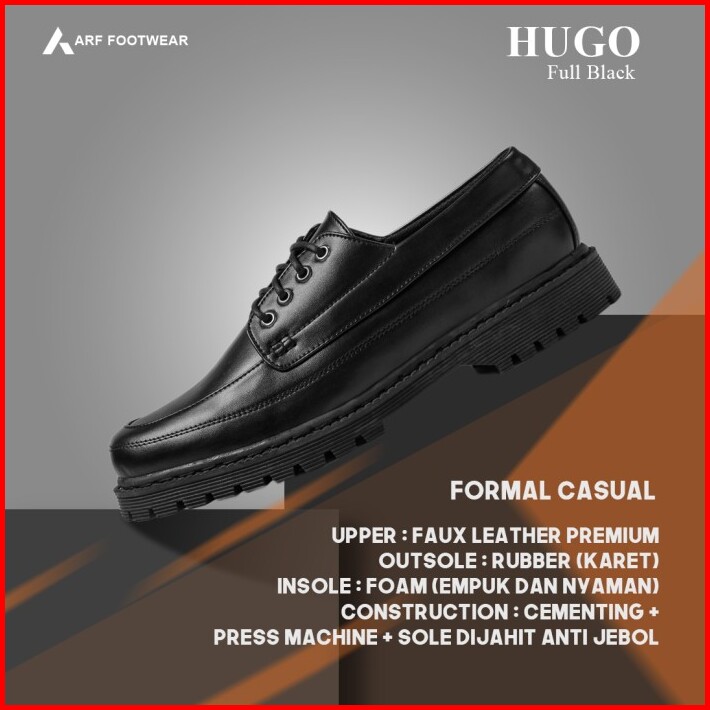 Sepatu Formal Pantofel Kulit Kerja Docmart Pria Wanita Arf Hugo Black