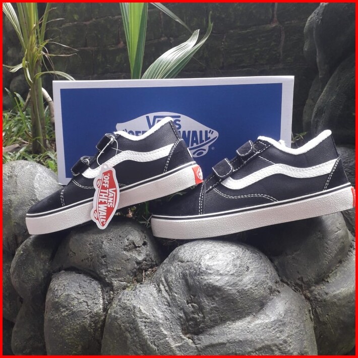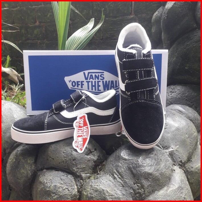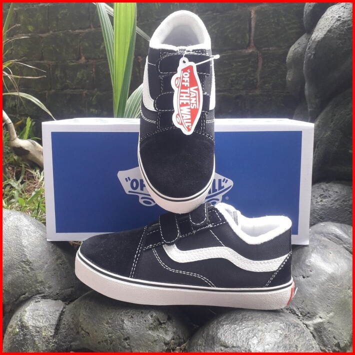 Sepatu Sekolah Anak Laki Laki Perempuan Vans93 Hitam Tali Dan Perekat