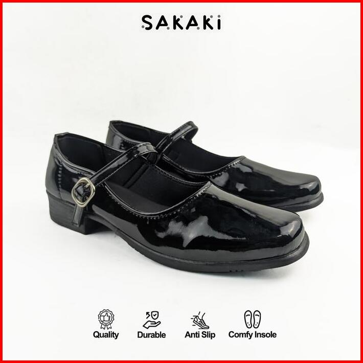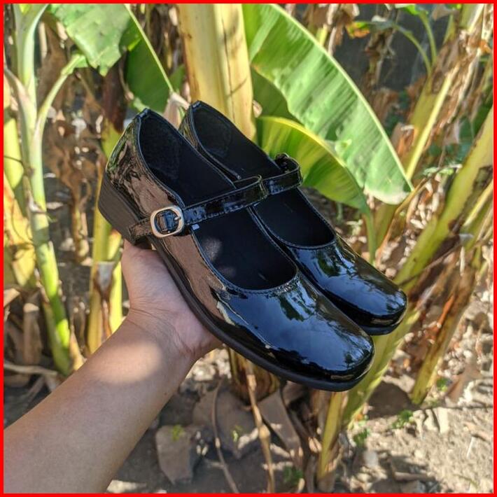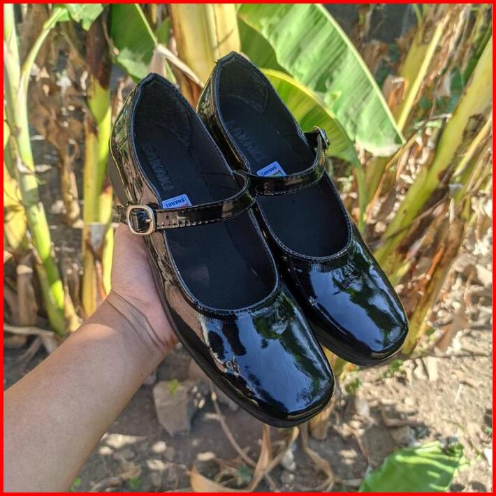 Sepatu Gesper Wanita Fantovel Glosy Mengkilap Size 37-41 Hitam Kerja Shoes Cewek Flat Pantofel