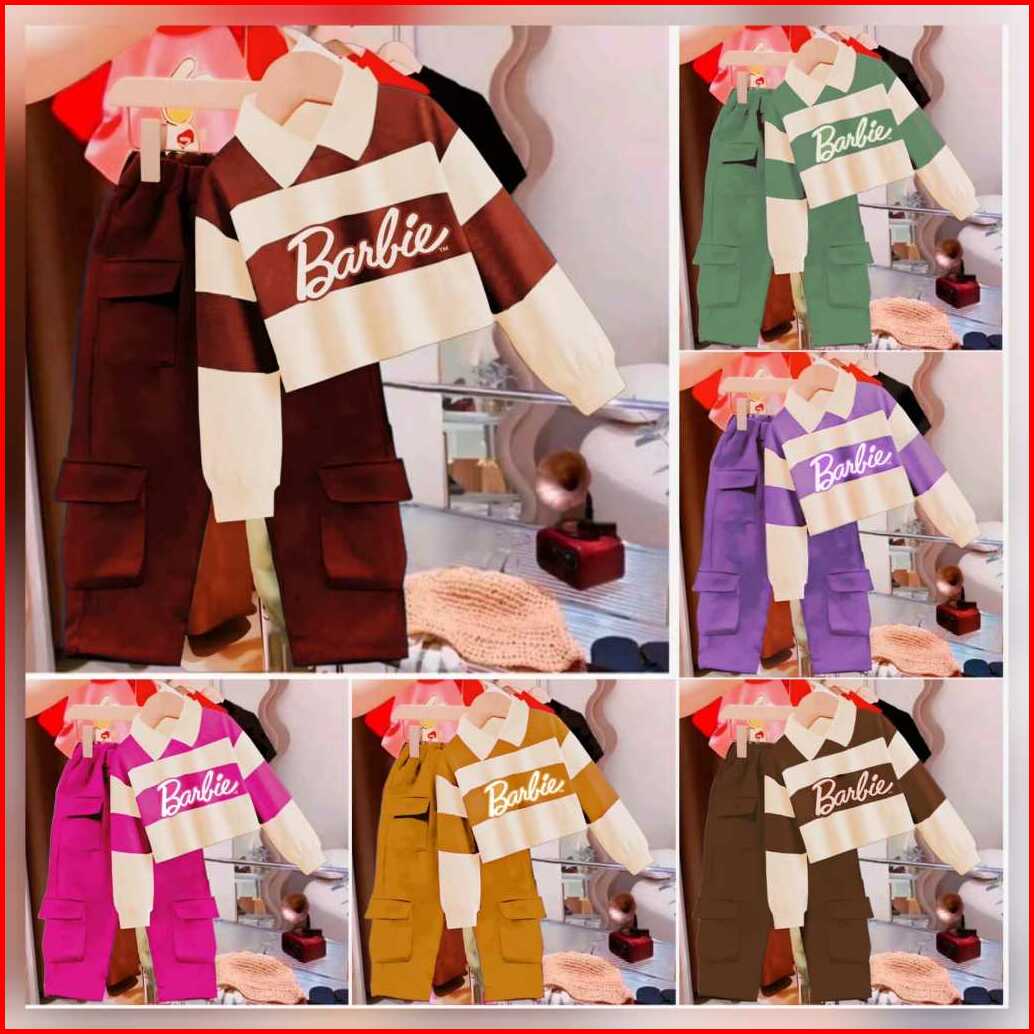 Setelan Terlaris Anak Perempuan Model Barbiee Setrip Kargo Untuk Anak 2-12 Tahun Setelan Anak Murah