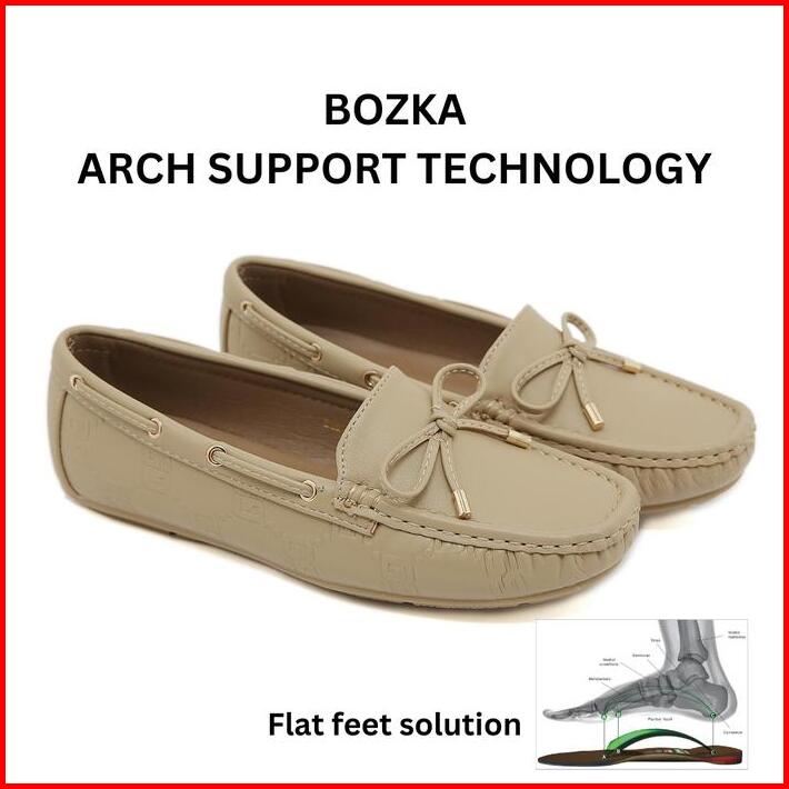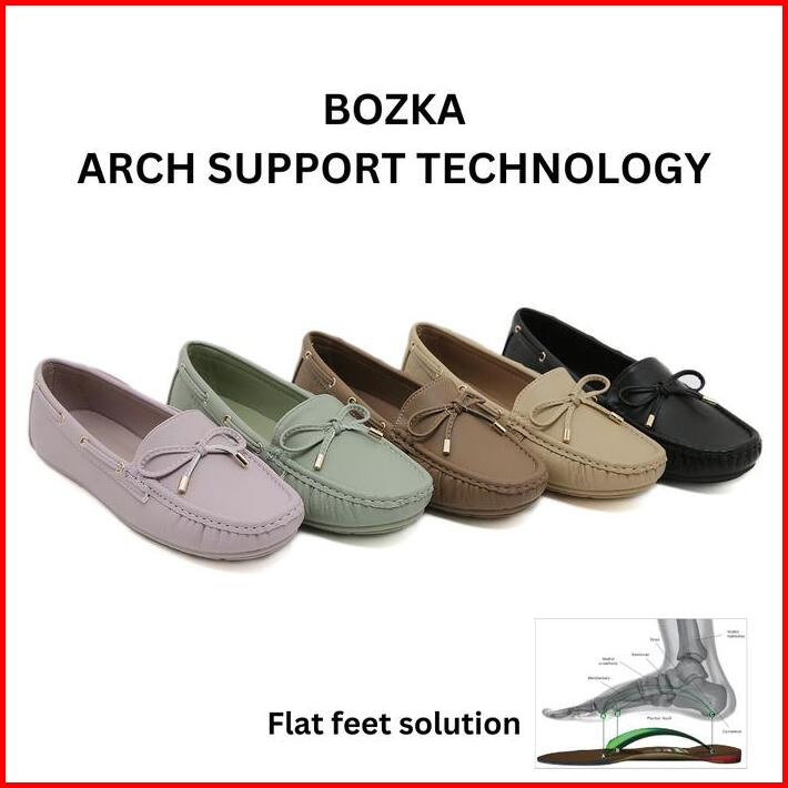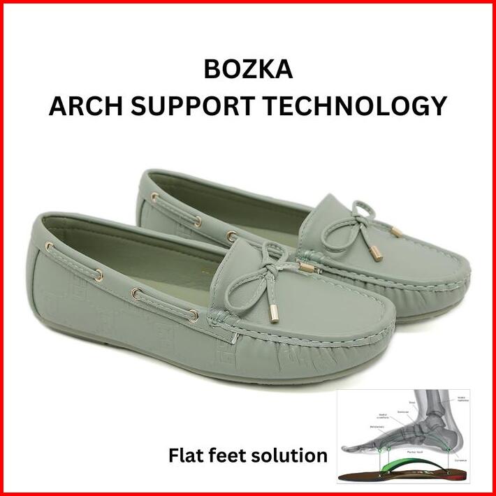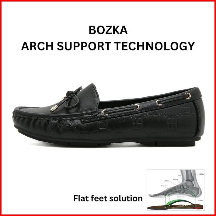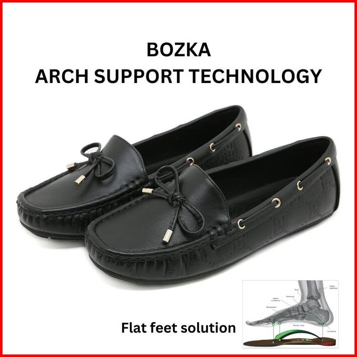 Bozka Sepatu Wanita Moccasin Loafer Kmh91 Arch Support Shoes Black
