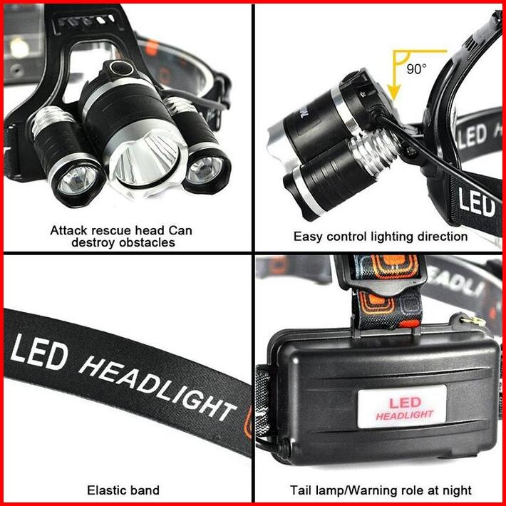 Senter Headlamp Creet6 10000 Lumens Waterproof Tipe Led 3 X Cree Xml T6