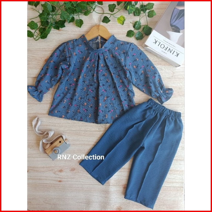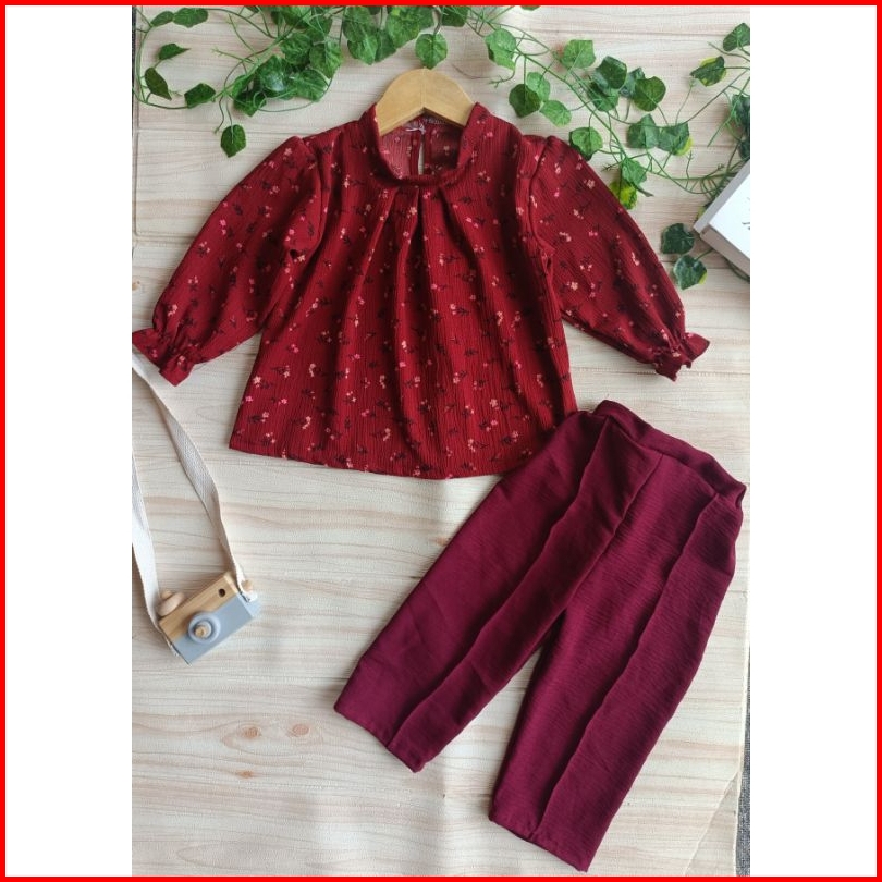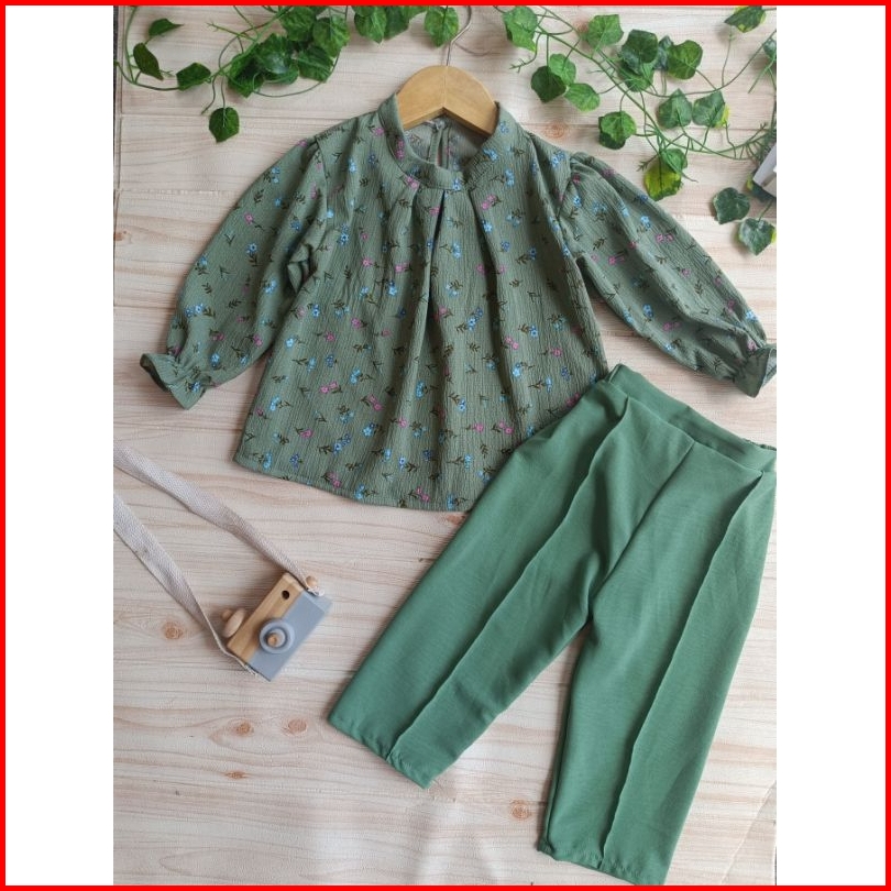 Setelan Anak Perempuan Terkini Bahan Crinkle Motif Usia 1-7 Tahun