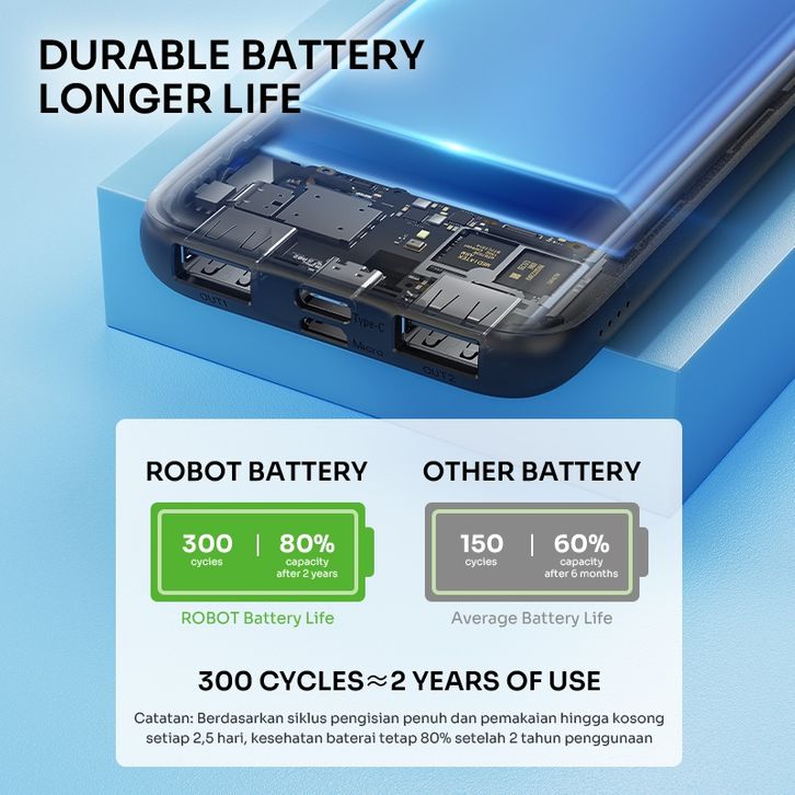PowerBank ROBOT RT12 10000mAh Dual Input Port Type C & Micro USB Best Seller