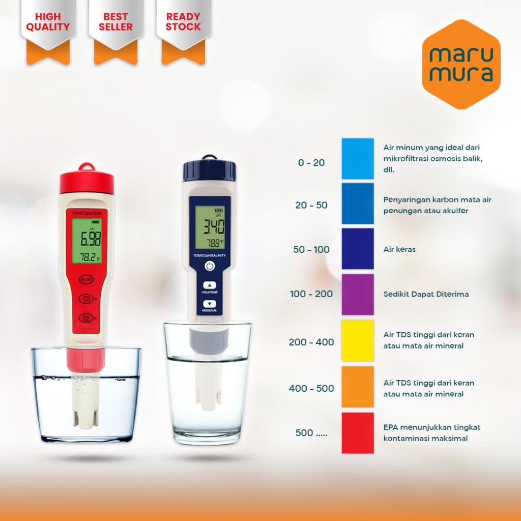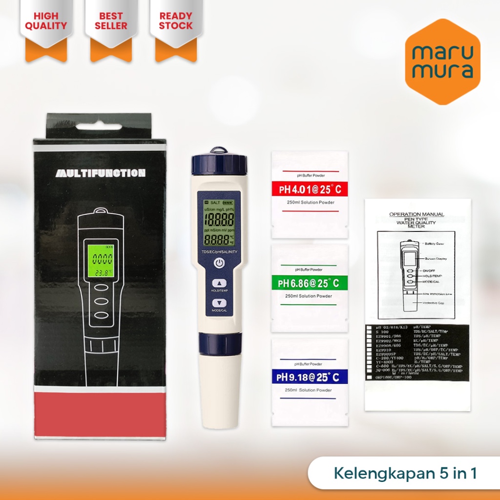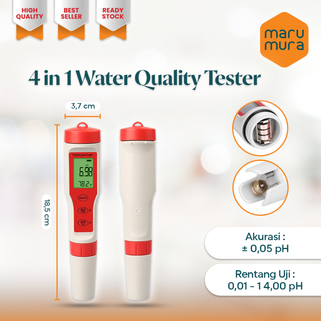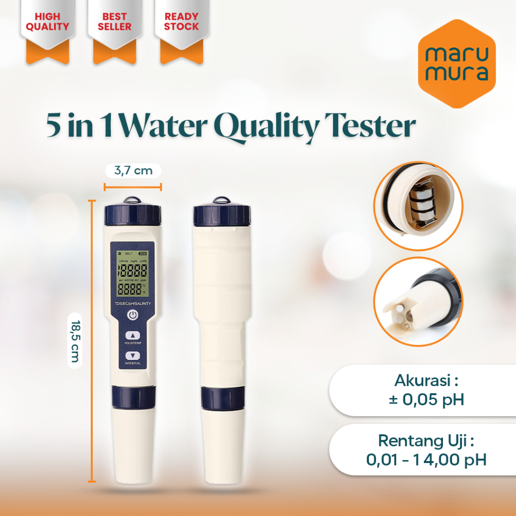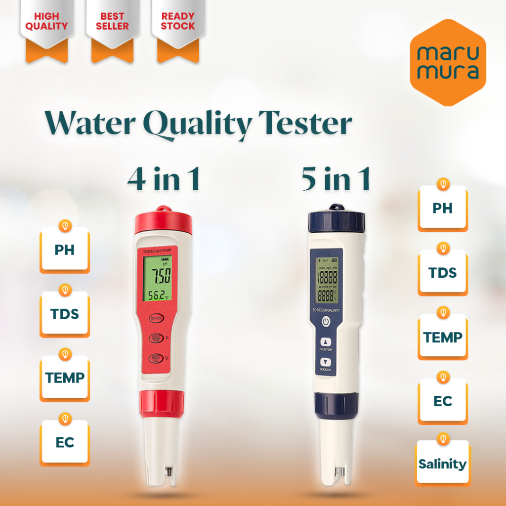 Marumura PH Meter Air Digital | Alat Pengukur Kualitas Air | Water Quality Tester PH TDS Salinity Temprature