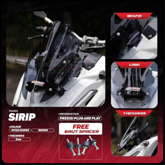 Windshield Visor ADV 150 dan ADV 160 M0Del V1 V2 SIRIP - TIPE SIRIP HITAM SMOKE