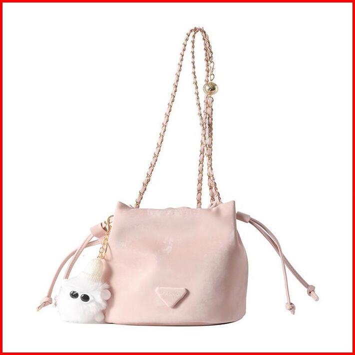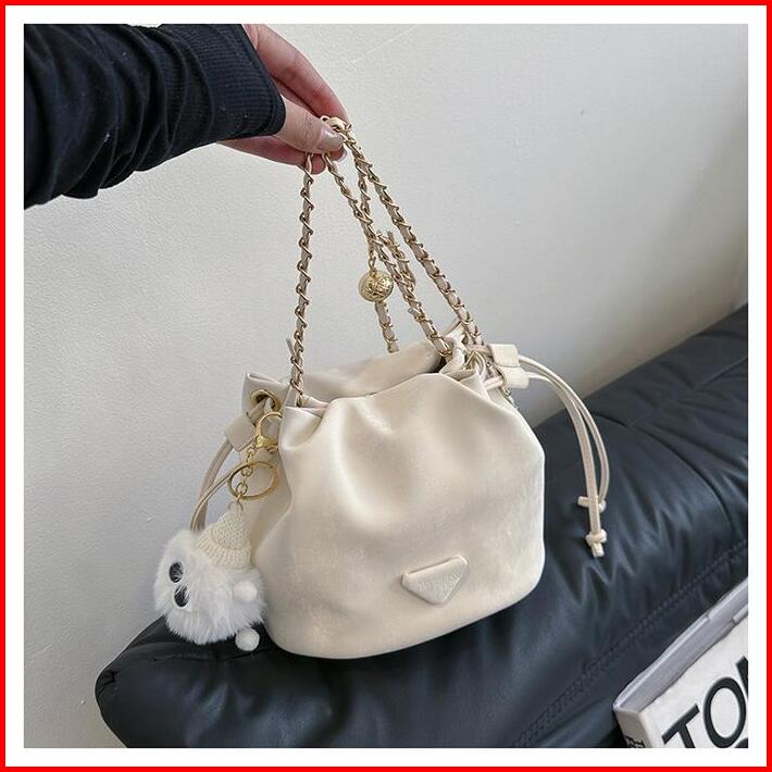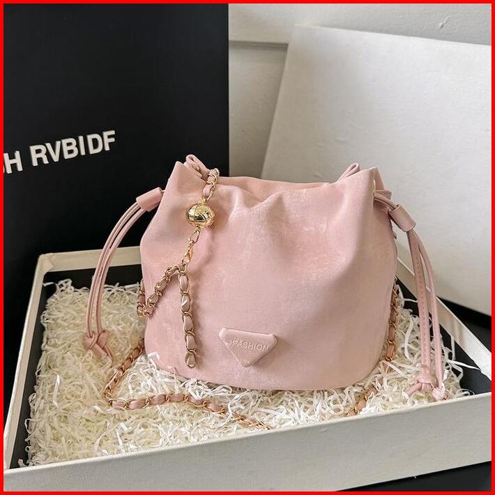Mini Bucket Bag Tas Bahu Wanita Tas Selempang Kulit Pu Yang Elegan 2024 Warna Solid Tas Wanita Fashion Korean Shoulder B