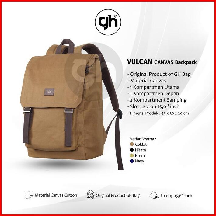 Gh-bag Tas Ransel Vulcan Canvas Backpack Tas Sekolah Kuliah Tas Laptop 15 6 Inch Pria