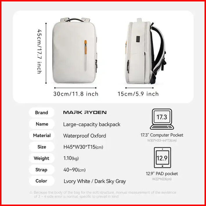 Mark Ryden Mr9202 Tas Ransel Backpack Laptop Travel Bag Usb 17 Inch