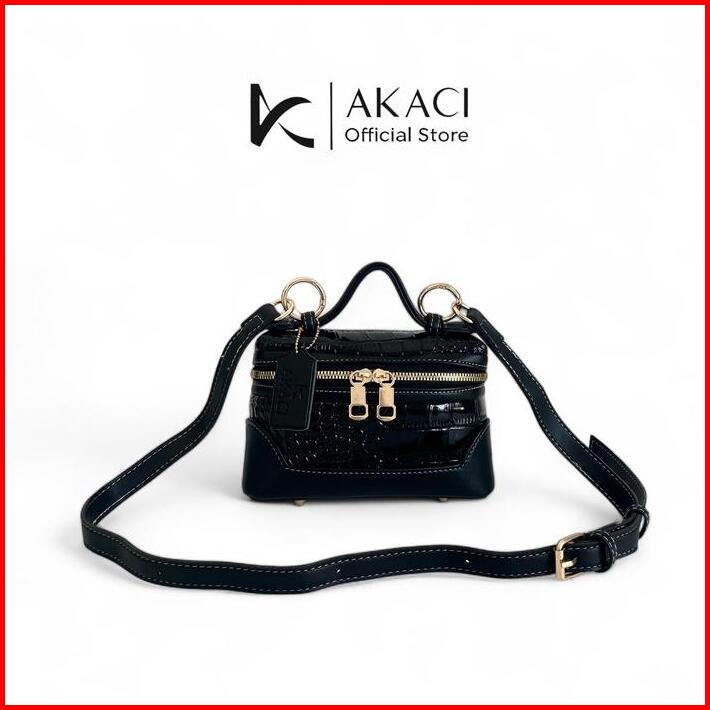 Tas Selempang Wanita Grace Akaci Hand Bag 10-8371 Bahan Croco Glossy 1 Ruang Tas Mini Muat Hp Lucu Elegan Mewah Murah Be
