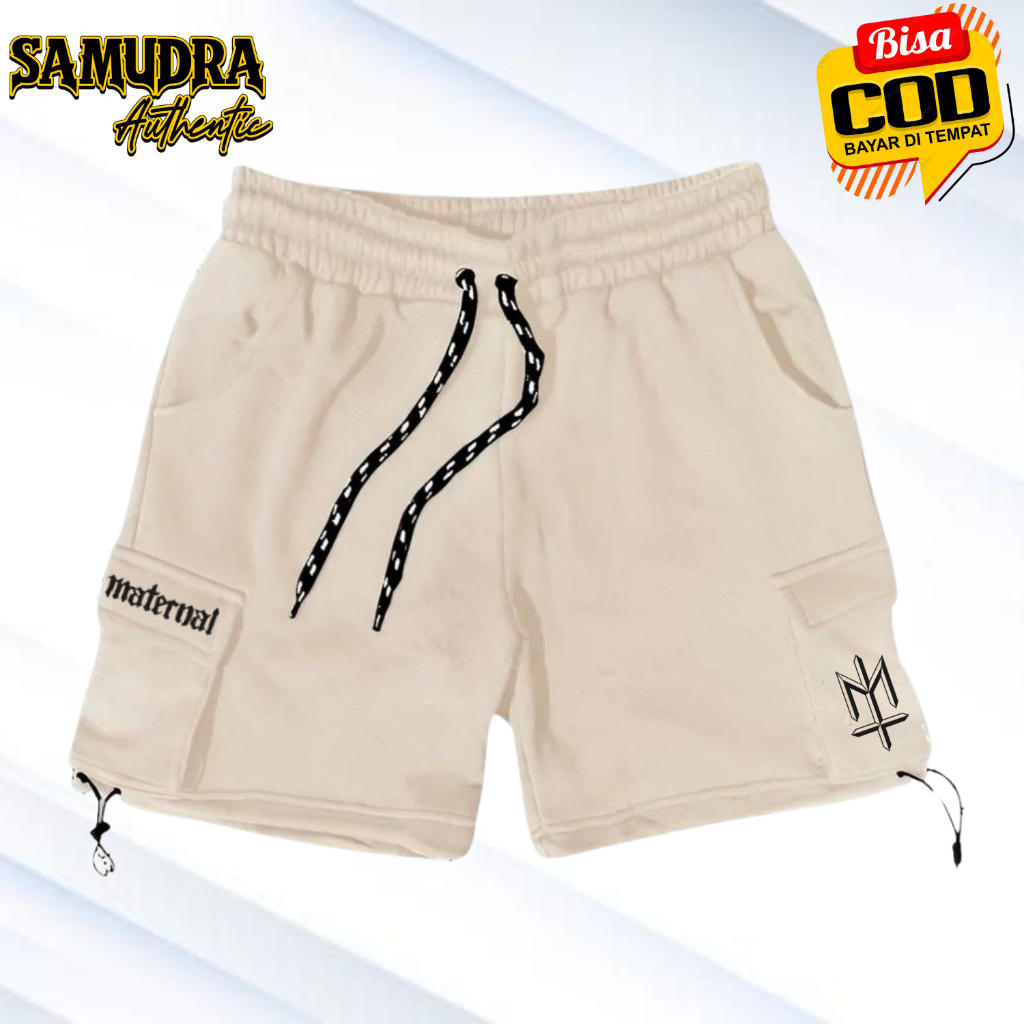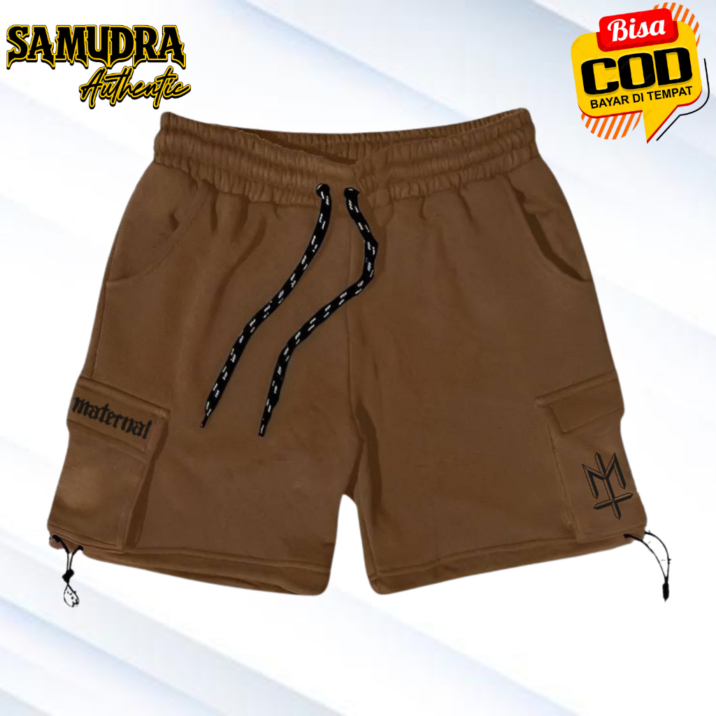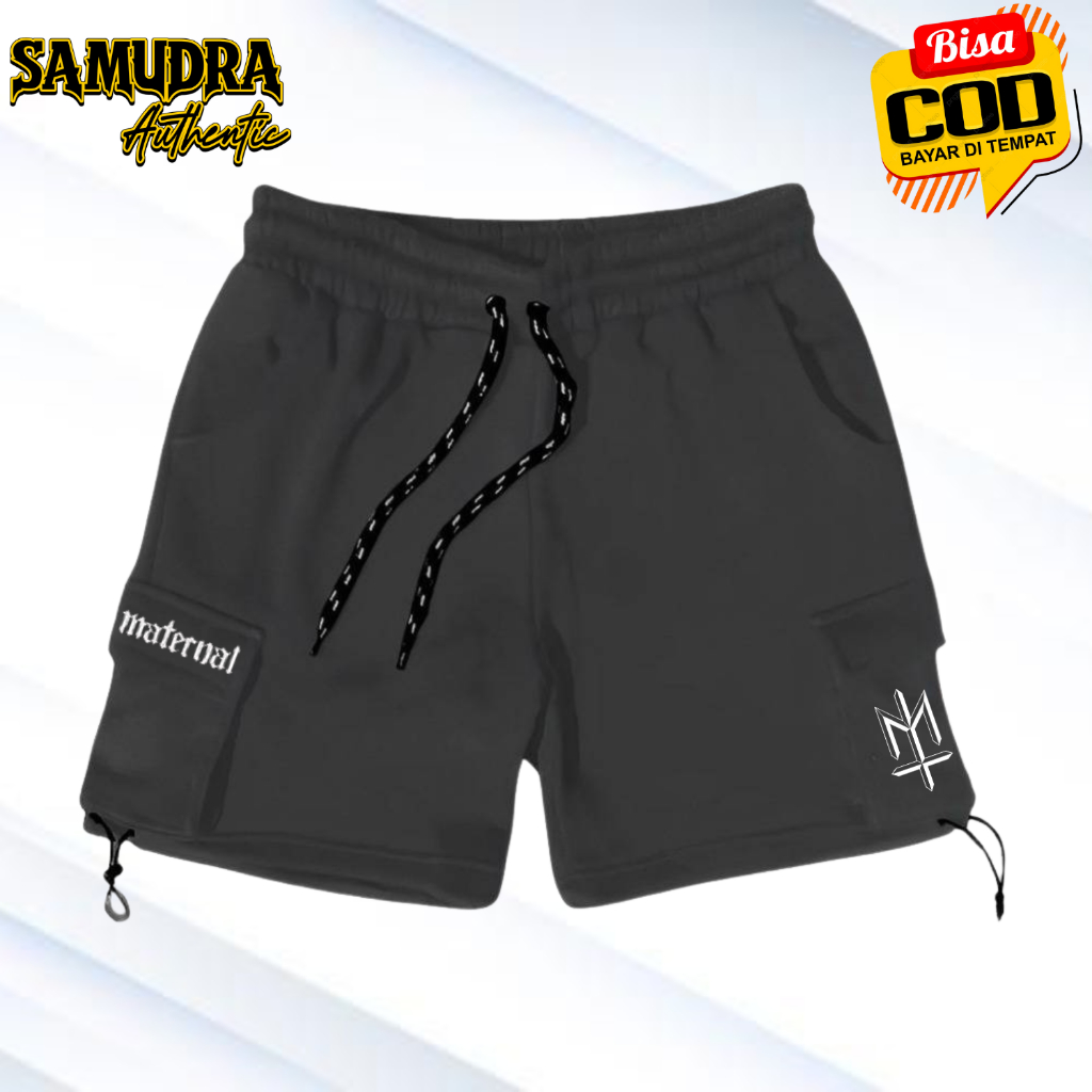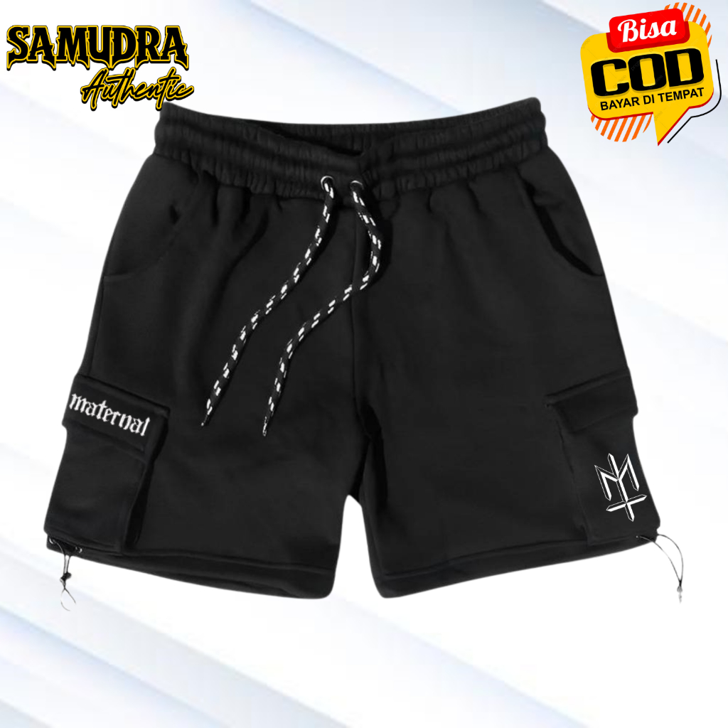 Celana Pendek Cargo Fleece Bahan Lembut Adem Terlaris Warna Hitam Maternal official store Maternal store bandung Materna