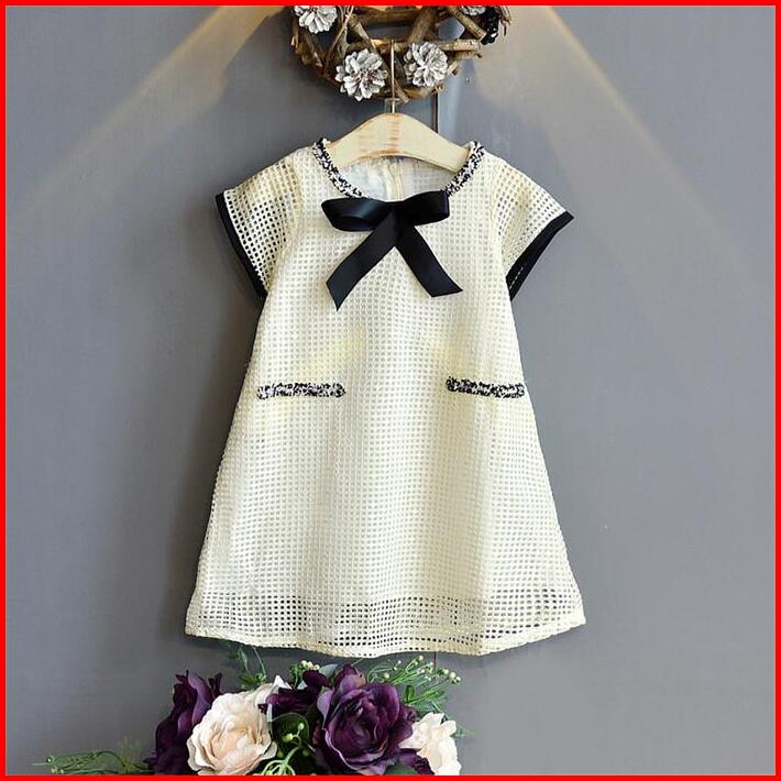 Princess Kesli 0-7 Tahun Dress Creamy Rajut Anak Perempuan Gaun Kids Bayi Kasual Korea Style Katun Lengan Girls