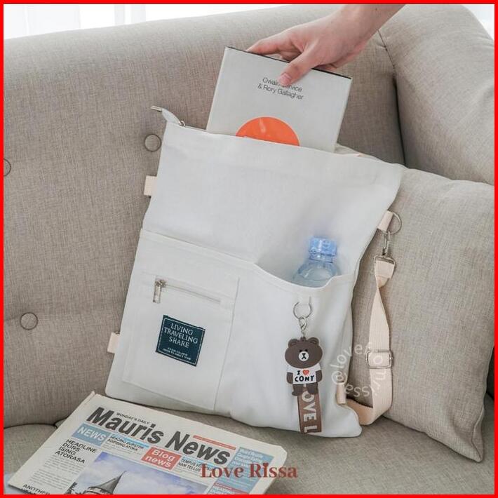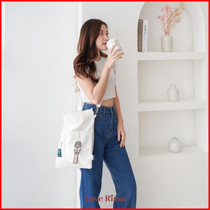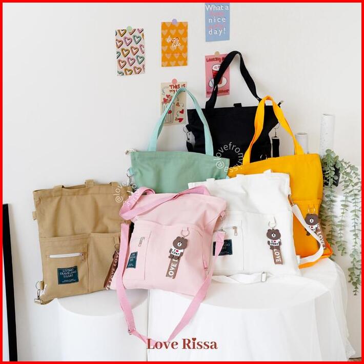 Rissa Tas Japanese Style Tas Selempang Tote Bag Ransel 3 In 1 Solid Color Kanvas Polos Ransel Love Rissa