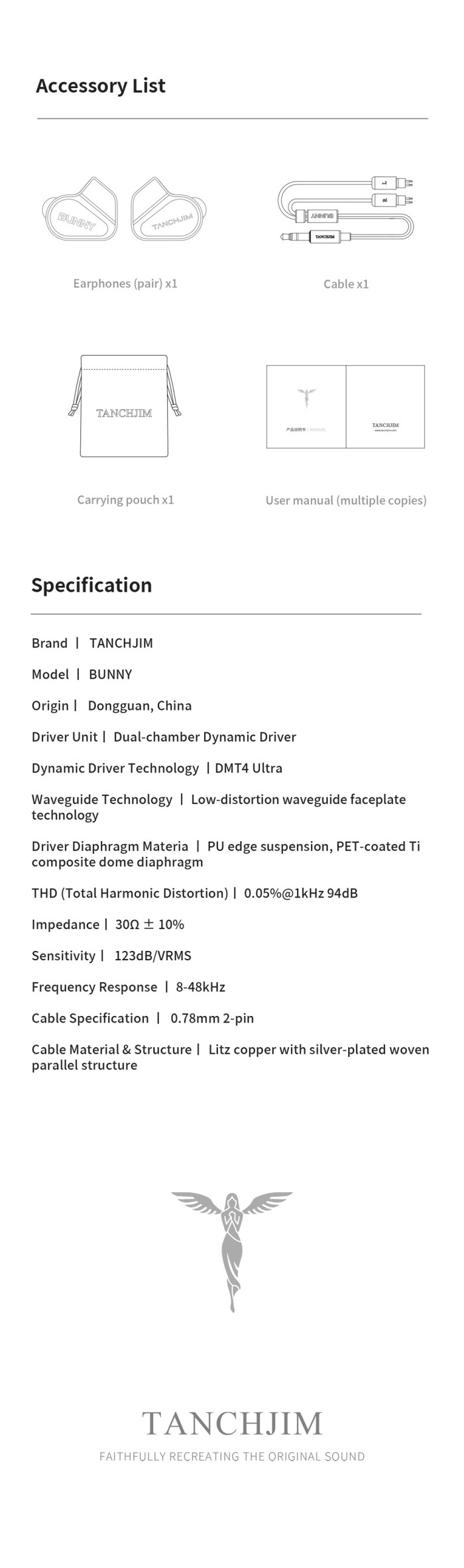 Tanchjim Bunny DMT4 Ultra Dynamic Driver Earphone In Ear Monitor IEM with Microphone