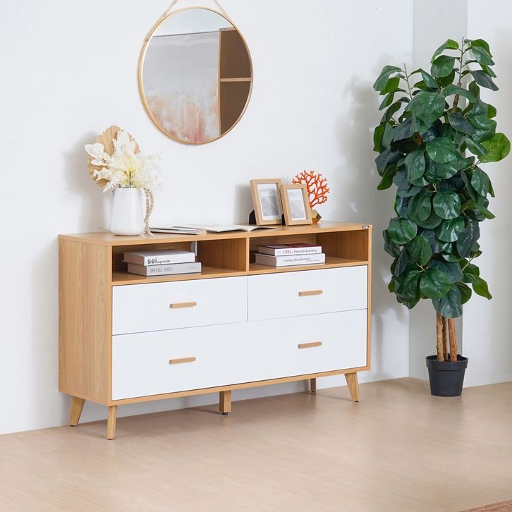 Informa Grecia Kabinet Dengan 4 Laci - Putih Oak Lemari Kabinet Serba.a Cabinet Penyimpanan Indoor Furniture Rumah