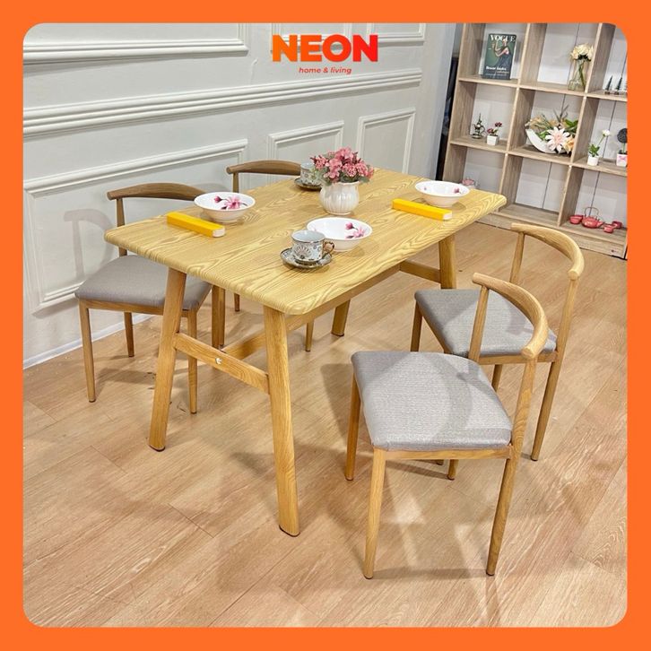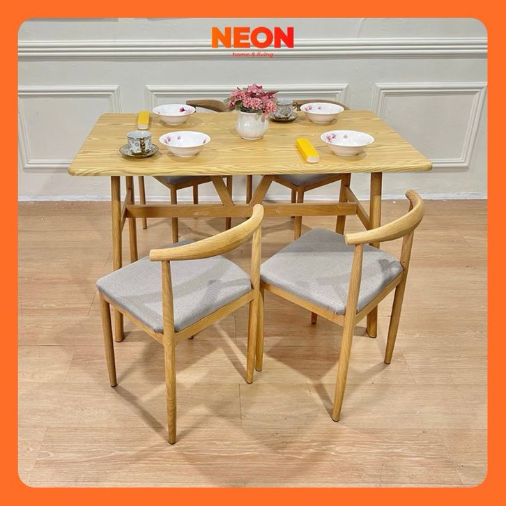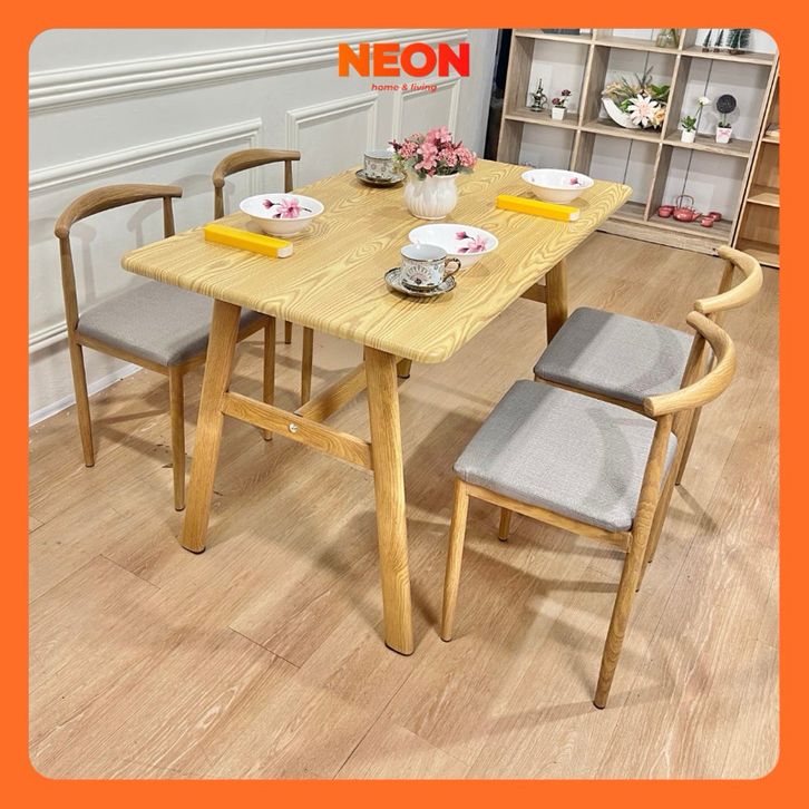 NEON Meja Makan Besi Domi 4 Kursi Motif Kayu Minimalis