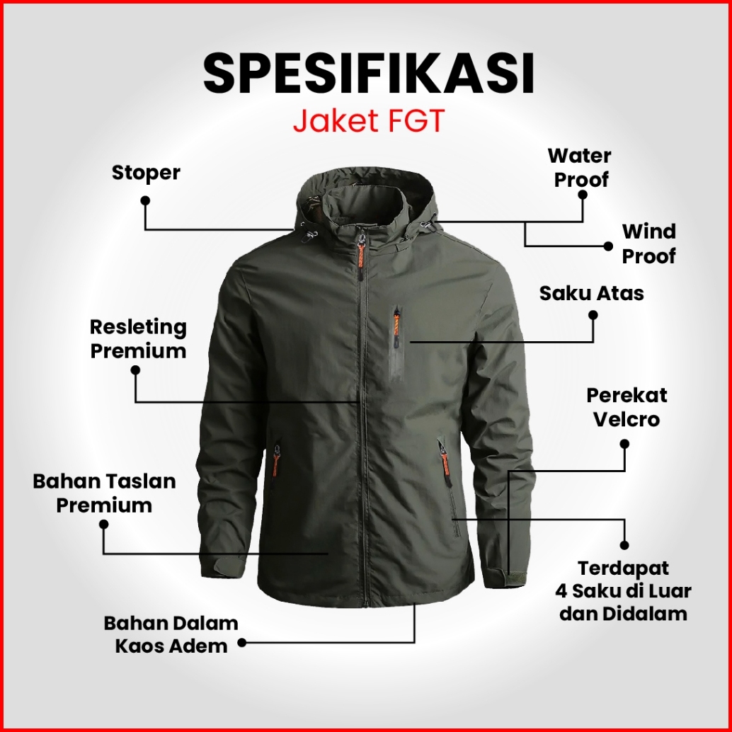 Valir Fgt Jaket Pria Waterproof Bahan Parasut Jaket Outdoor Pria Untuk Motor Dan Hiking Ukuran M-xl