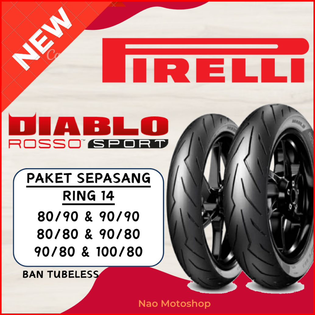 Paket Sepasang Free Wrapping Ban Tubeless Pirelli Diablo Rosso Sport Ring 14 80 90 90 90 80 80 90 80 100 80 Motor Beat V