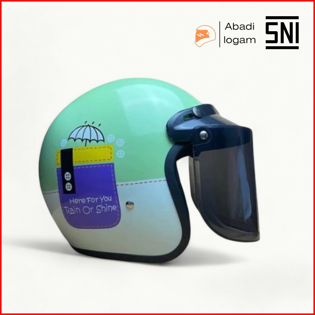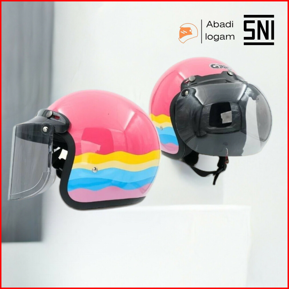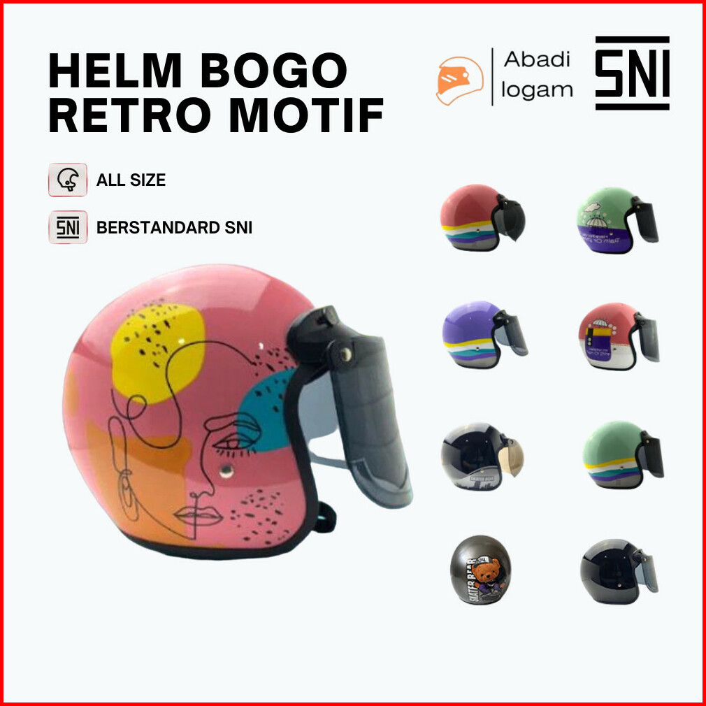 Helm Bogo Dewasa Classic Motif Lucu Hds Sni - Helm Half Face Retro Aman Nyaman