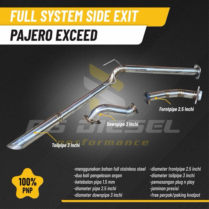 Full system side exit pajero exceed bahan stainless ketebalan 1.5 mm