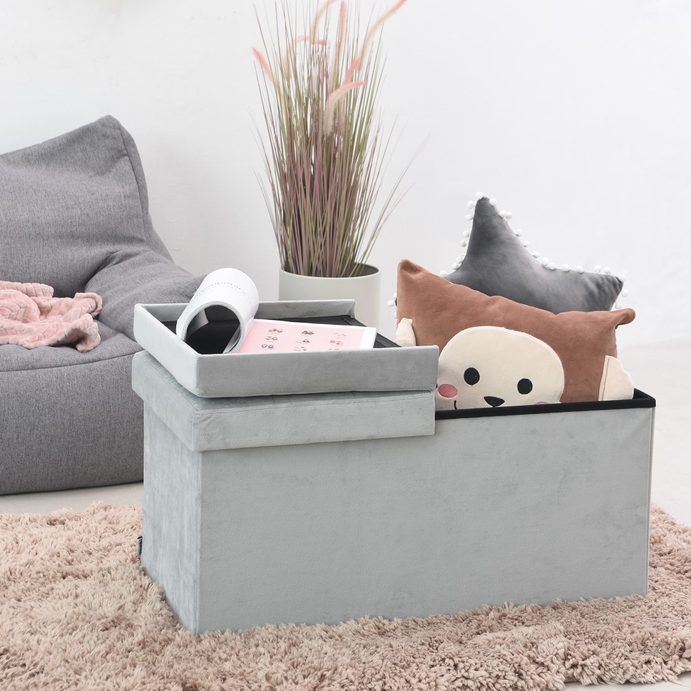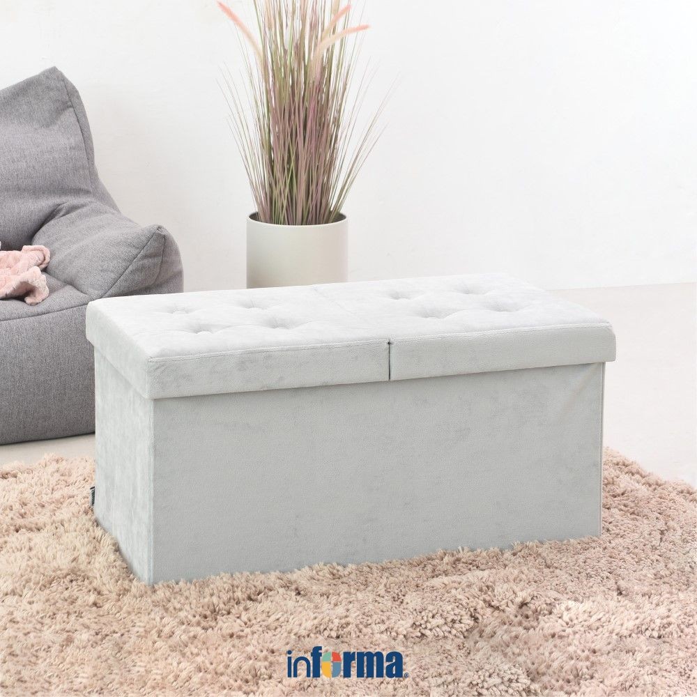 Informa 76X38X38 Cm Kotak Penyimpanan Lipat Ottoman - Abu-Abu Tempat Duduk Serbaguna Bangku Multifungsi Ottoman with Sto