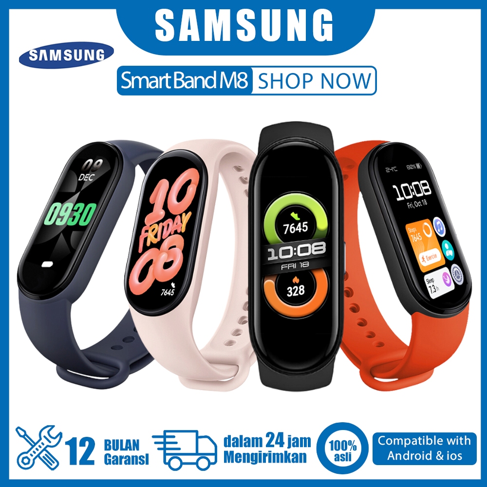 100% Ori SAMSUNG Smartband M8 SPORTS BRACELET Series1.85 inches Square Screen Bluetooth wanita pria jam tangan elektroni