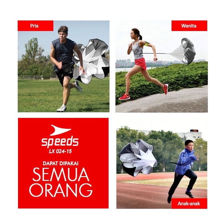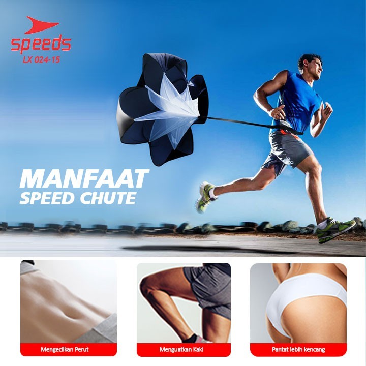 SPEEDS Speed Chute Parasut Latihan Lari Agility Strength Ikat Pinggang Black Jogging Pemberat 024-15