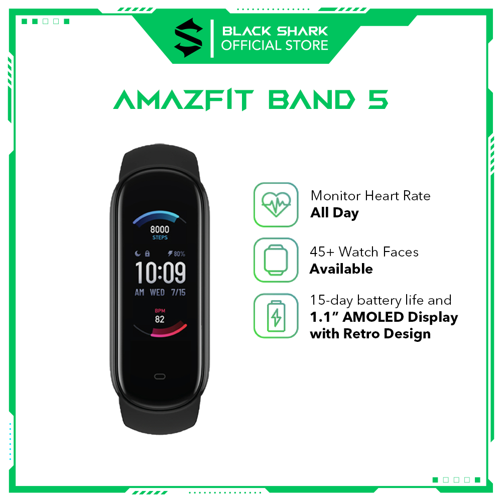 Amazfit Band 5 Activity Fitness smartwatch 1.1" HD AMOLED Always-On display, SpO2, jam tangan with Heart Rate, Sleep, St