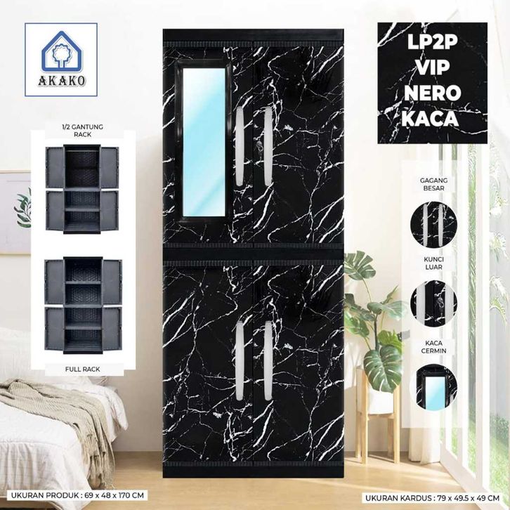 AKAKO Lemari Pakaian Plastik Baju JUMBO BESAR Mirip NAIBA MURAH LP2p VIP KACA CERMIN FULL KUNCI