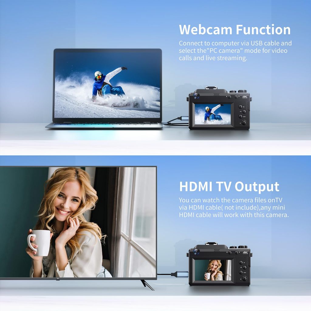 【Dengan Kartu 64GB】Teeka 75/64MP Digital Camera Wifi Video 5K/4K 18X Digital Zoom Dengan Dukungan Selfie Koneksi Wifi un