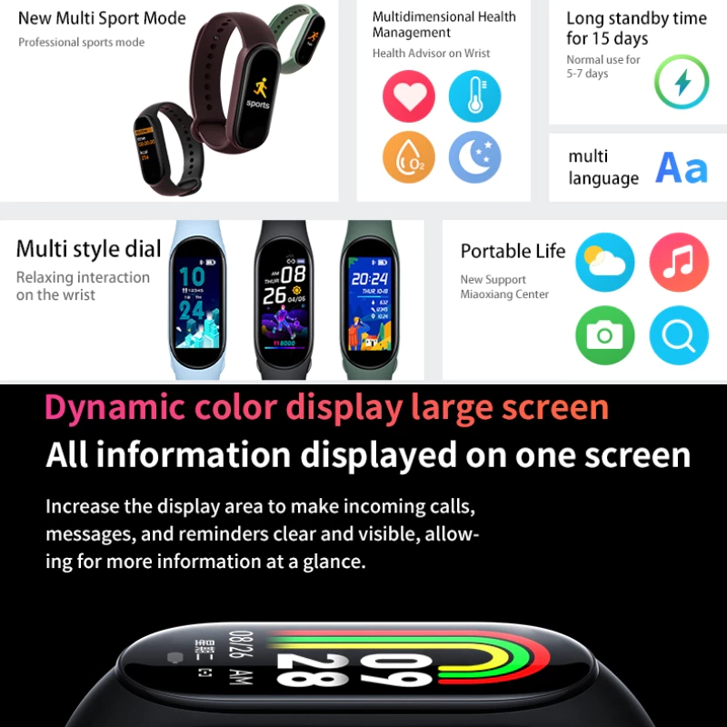 [100% ORIGINAL] HUAWEII Smartband M8 pria smartband smartwatch wanita jam tangan elektronik Pengingat panggilan masuk no