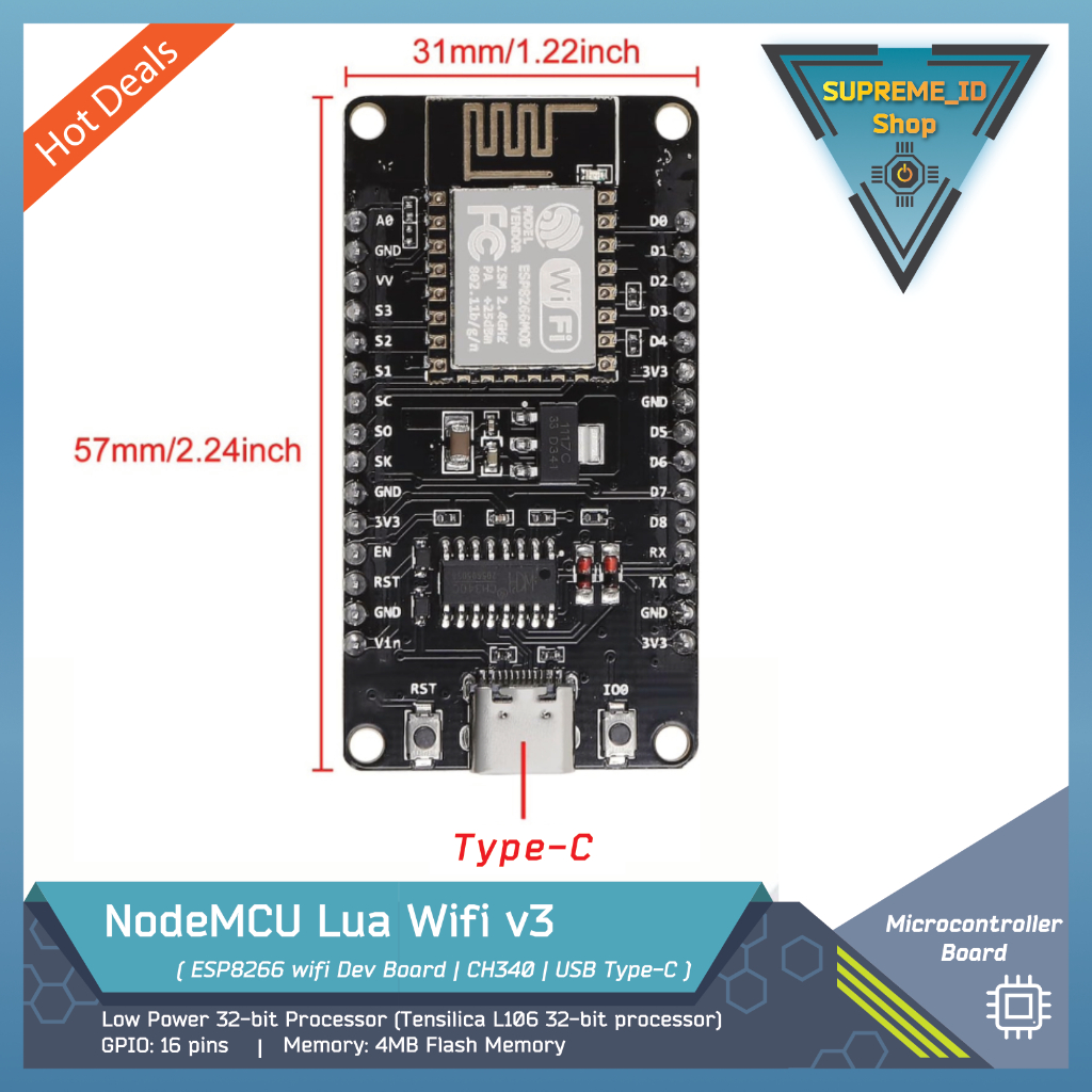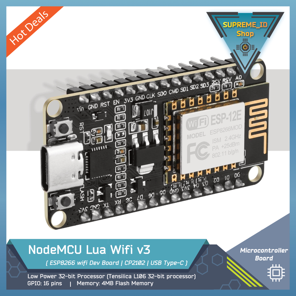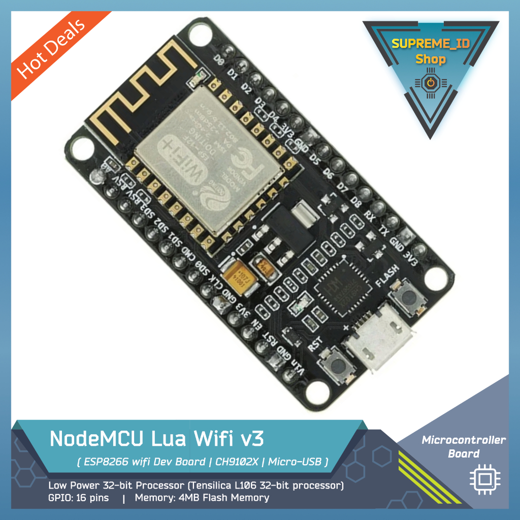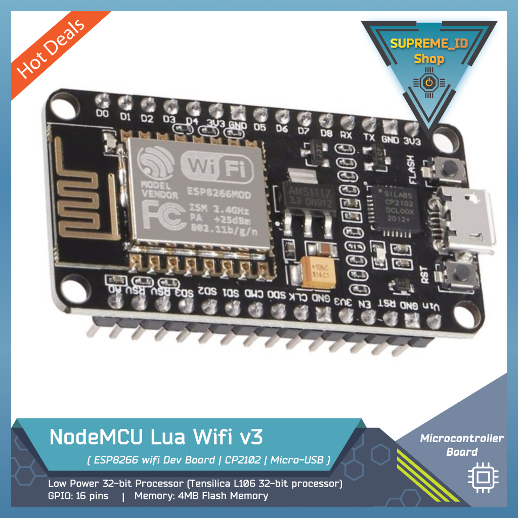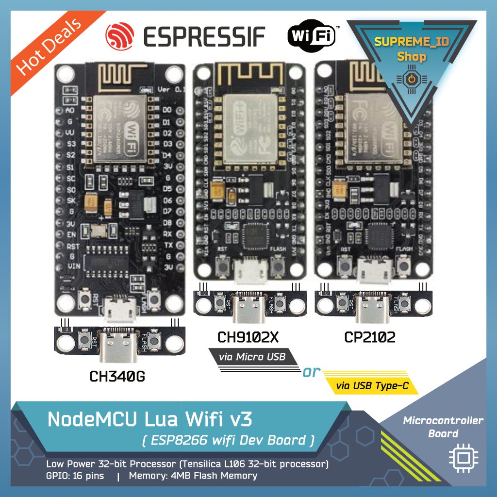 NodeMCU Lua Microcontroller ESP8266 Wifi IoT Wireless Chip Dev Board Component | v.3 - CH340 / OEM - CP2102 / Improvemen