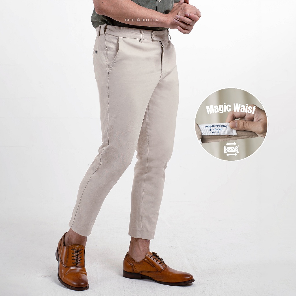 BlueButton Celana Chino Ankle Pants Slim Fit Cream