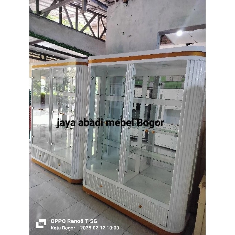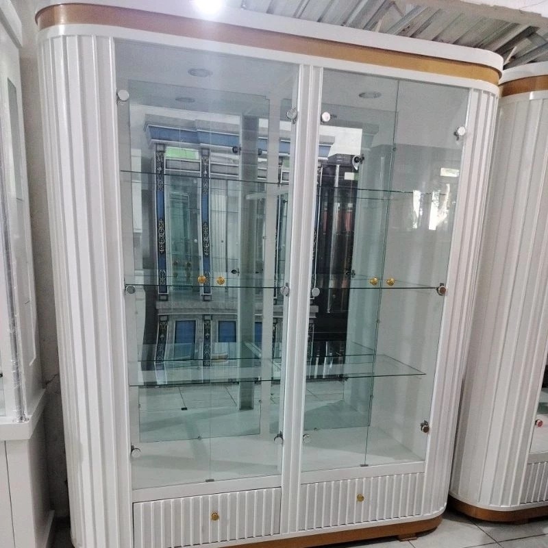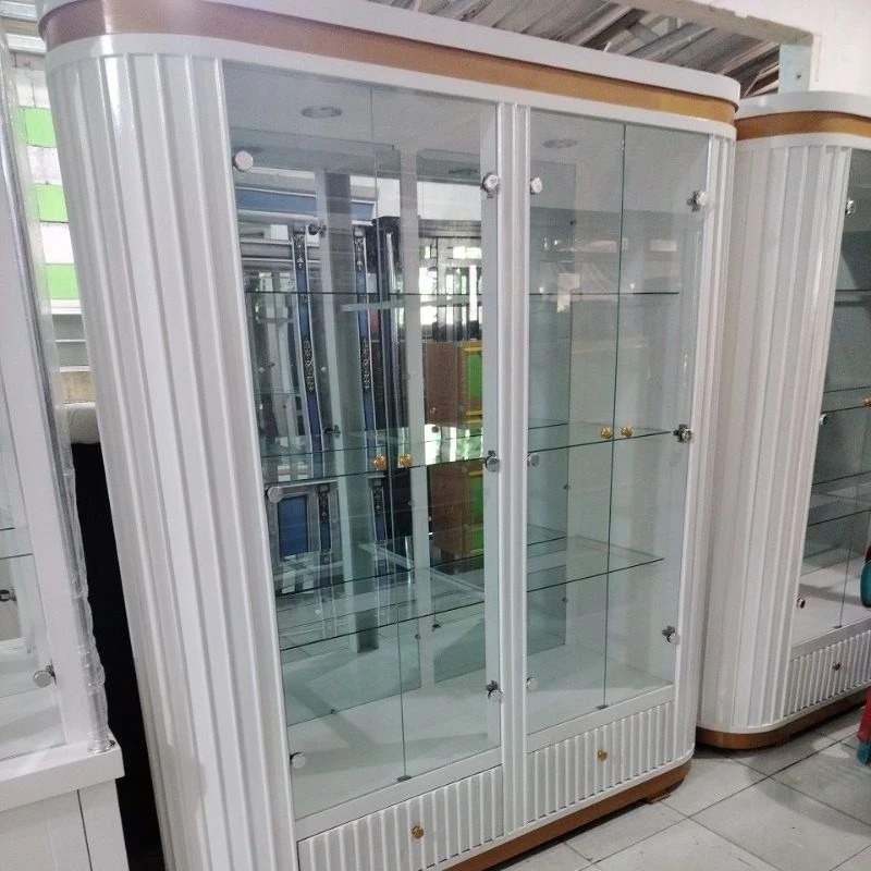 lemari kaca ruang tamu PROMO!!!!!Lemari pajangan kristal 4pintu oval multiplek finishing cat Duco khusus Jabodetabek