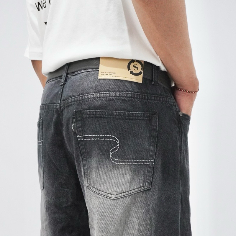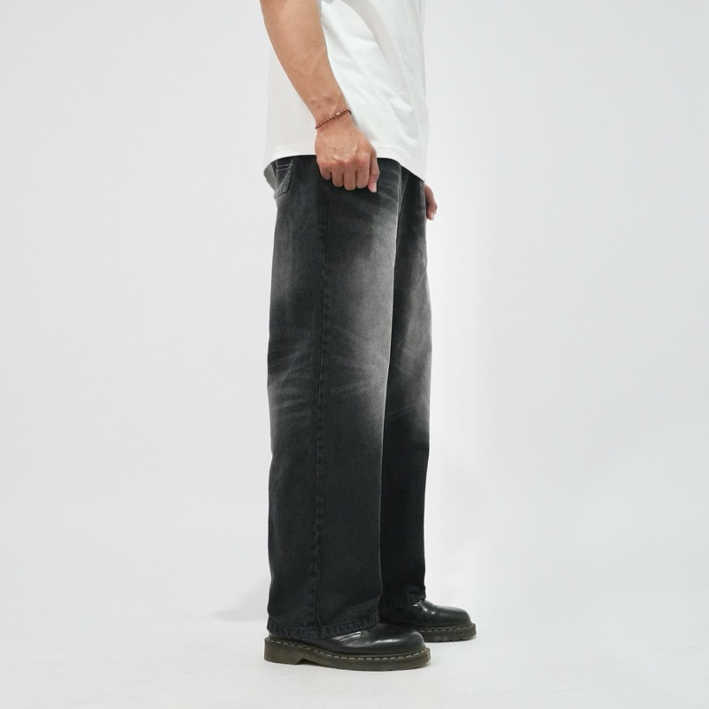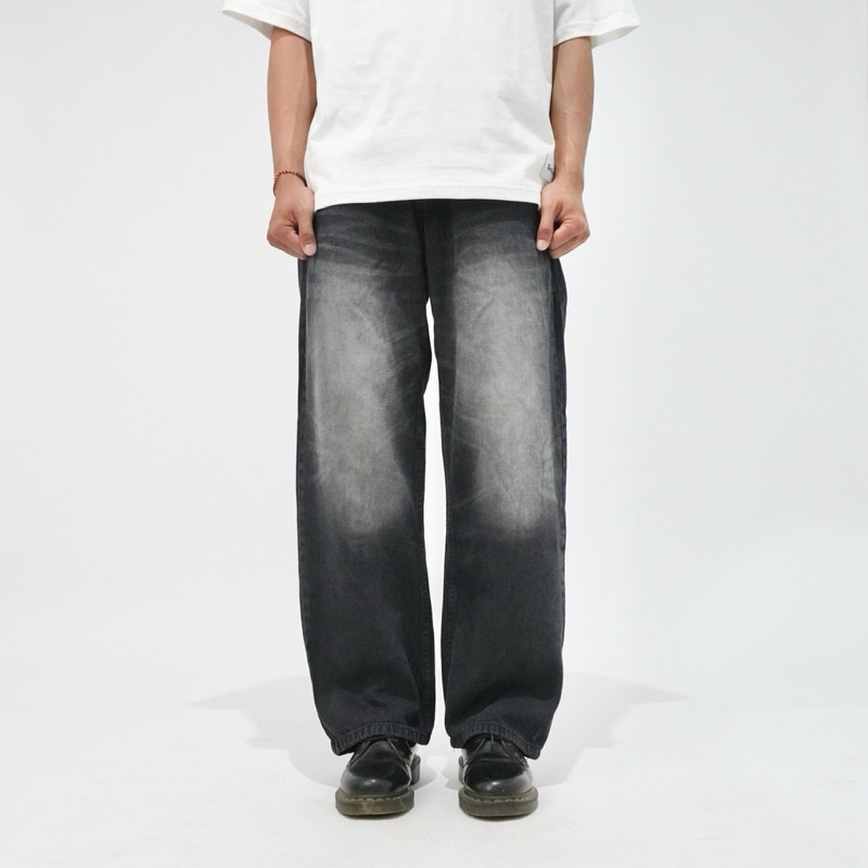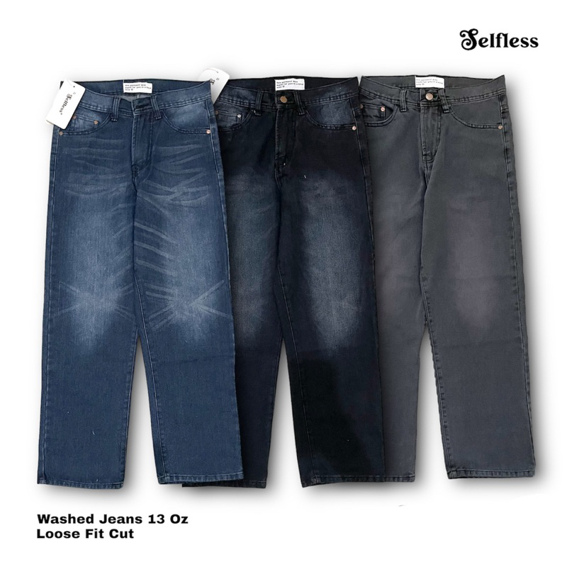 SELFLESSANDCARE - Celana Panjang Baggy Jeans Denim Washed Loose Fit Pria Whisker Skena Gombrong