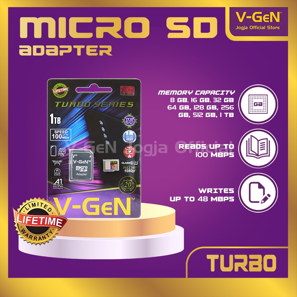 Micro SD V-GeN Turbo 8GB, 16GB, 32GB, 64GB, 128 GB +ADAPTER Original - Resmi