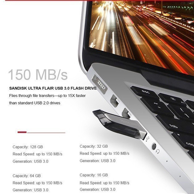 SanDisk Ultra Flair USB 3.0 150MB/s Flashdisk Drive CZ73 16GB 32GB 64GB 128GB