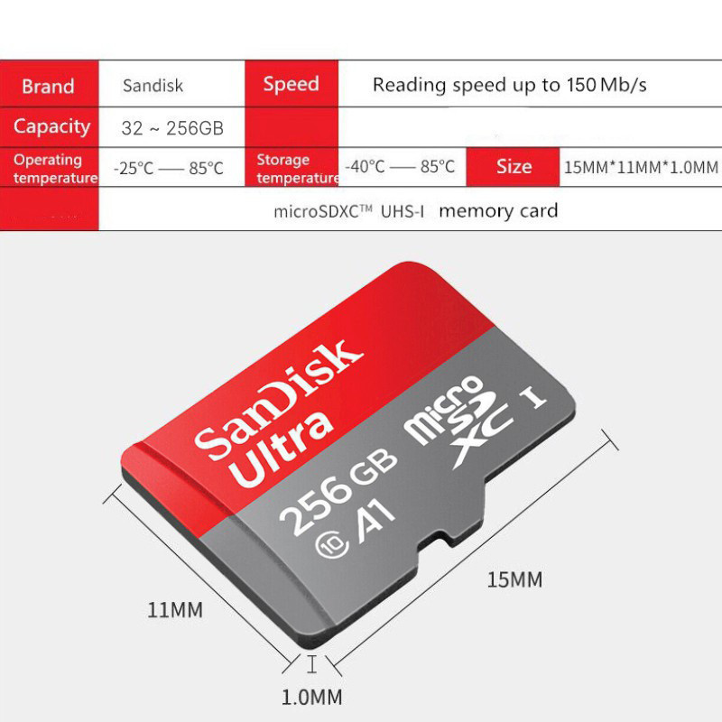 Sandisk Memory Card 150MB/S Micro SD Card A1 32GB 64GB 128GB 256GB Fast Speed